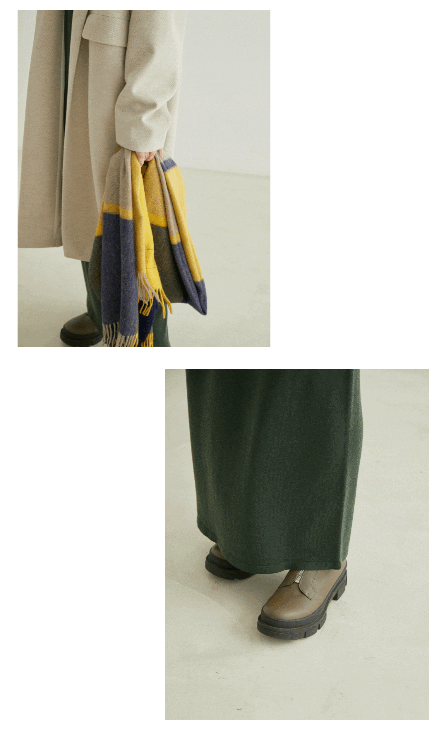 ウール素材が上品な印象を与えてくれるロングコートと合わせれば、マーメイドスカートも大人なスタイリングに。甘くなり過ぎないので、幅広い年齢の方にぴったりな組み合わせです。