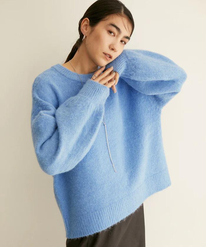 ヘアリーなシャギー素材のクルーネックニットがオンライン限定で登場!