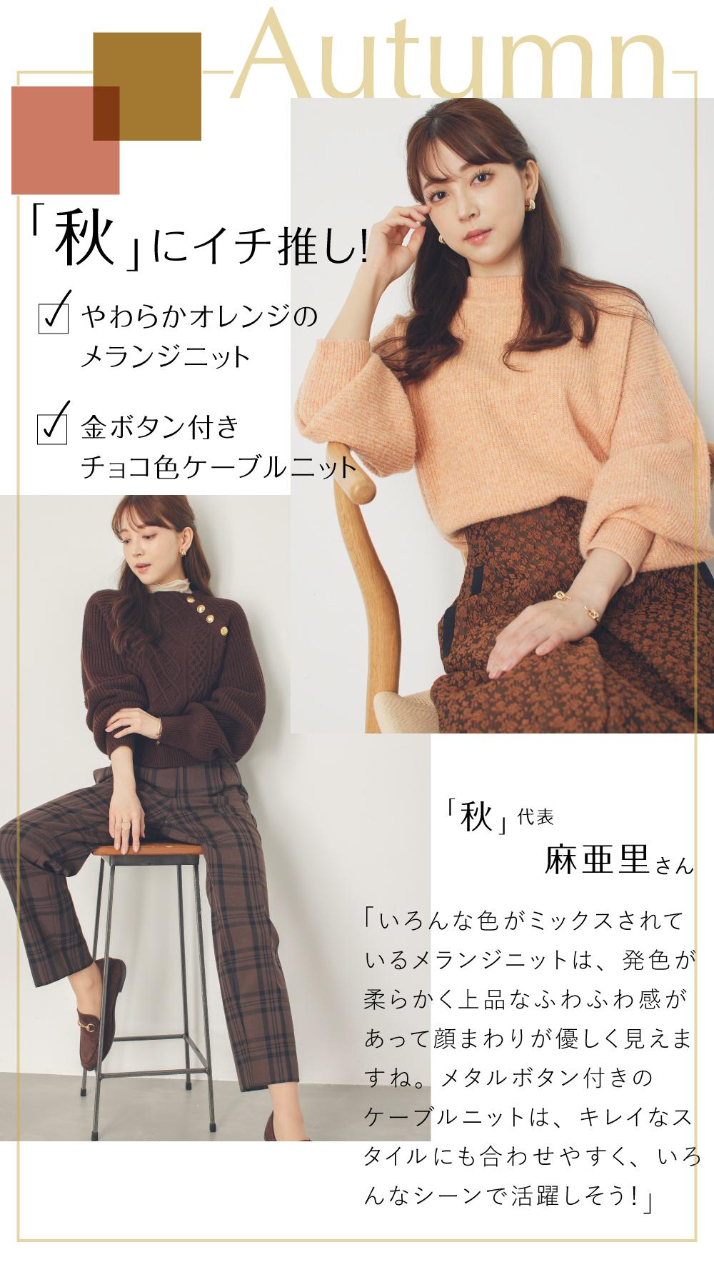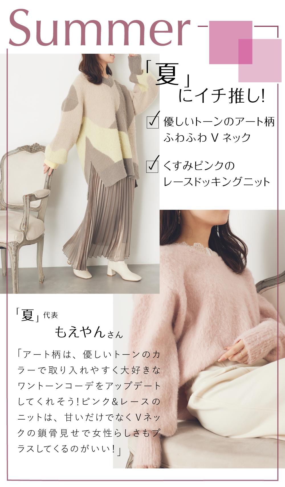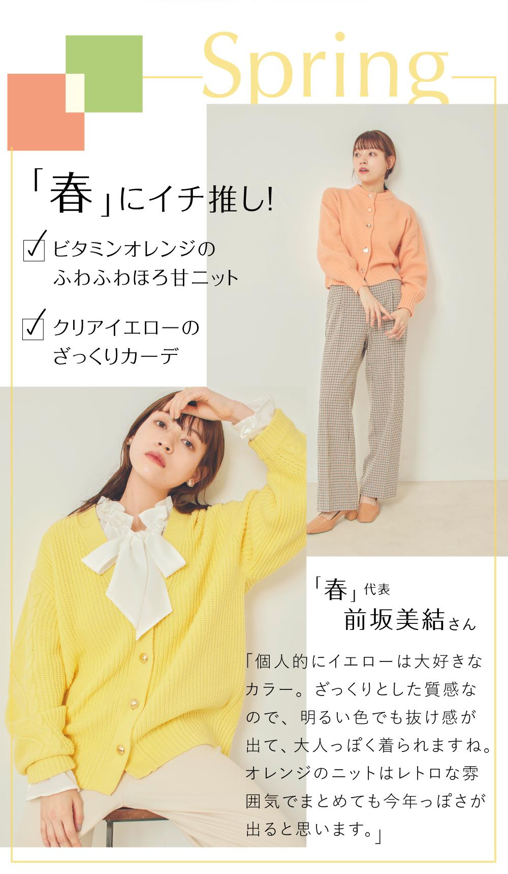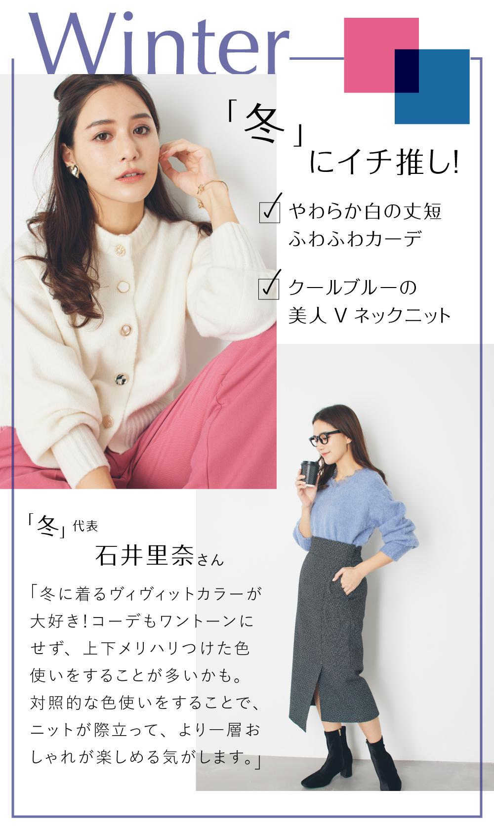 柄モノからキレイ色まで、バリエ豊富に揃ったVISの「ふわふわニット」を it MODEL 達がパーソナルカラーに合わせてセレクト。