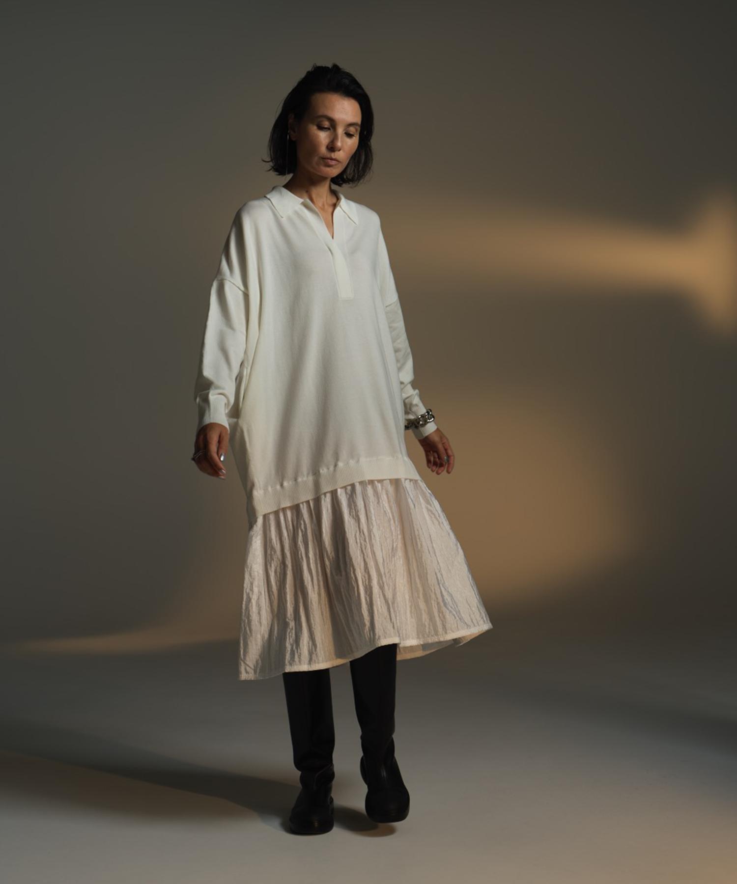 スポーティとエレガンスとリラック ス、三位一体 衿羽ニットドレス