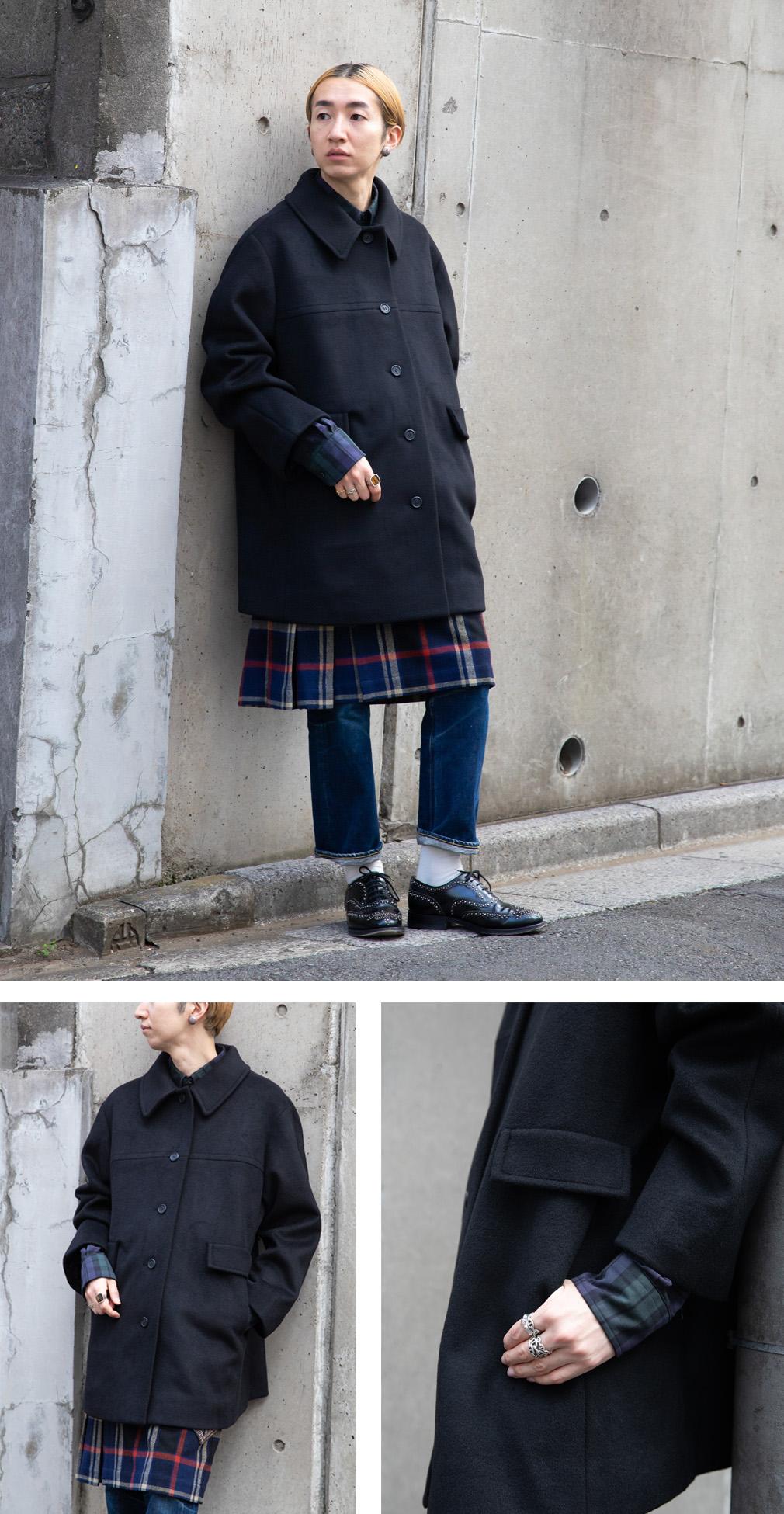 コートのミドル丈をレイヤードで活かしたstylingです!