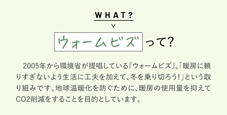 いよいよ冬も本番。身が縮まる寒さについつい暖房の温度を上げてしまいがち。これではますます地球温暖化が進行することに。今回 はそんな寒い冬をエコに乗り切るためのライフスタイル『ウォームビズ』をご紹介致します。