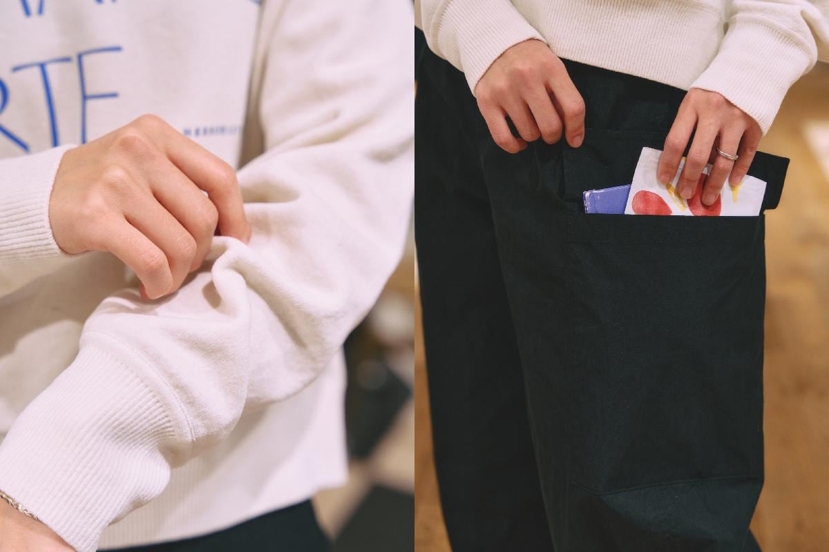 とろけるような着心地がやみつきのCreamy Cotton(クリーミーコットン)のロゴプルオーバーは必需品。またオーガニックコットンを使用しているので、赤ちゃんを抱っこする機会が多い私にはとても嬉しいポイントです。カーヴィーカーゴパンツはポケットが大きく、お菓子や小さな絵本も入ってしまう、優秀パンツ。旅行先でグズってしまった時も、ポケットからすぐに取り出せるので安心です。