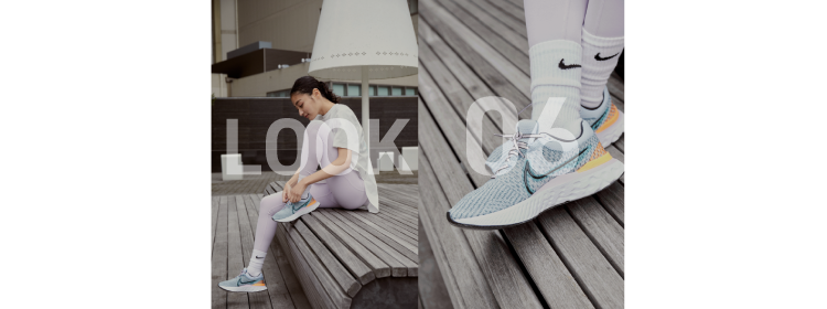 今日もNERGYのスポーツウエアとNIKEのスニーカーコーデで、タウンへくり出す彼女。そんなスニーカー愛が止まらない彼女の日常を、この春新作のウエアとともに7つの最新Lookでご紹介いたします。