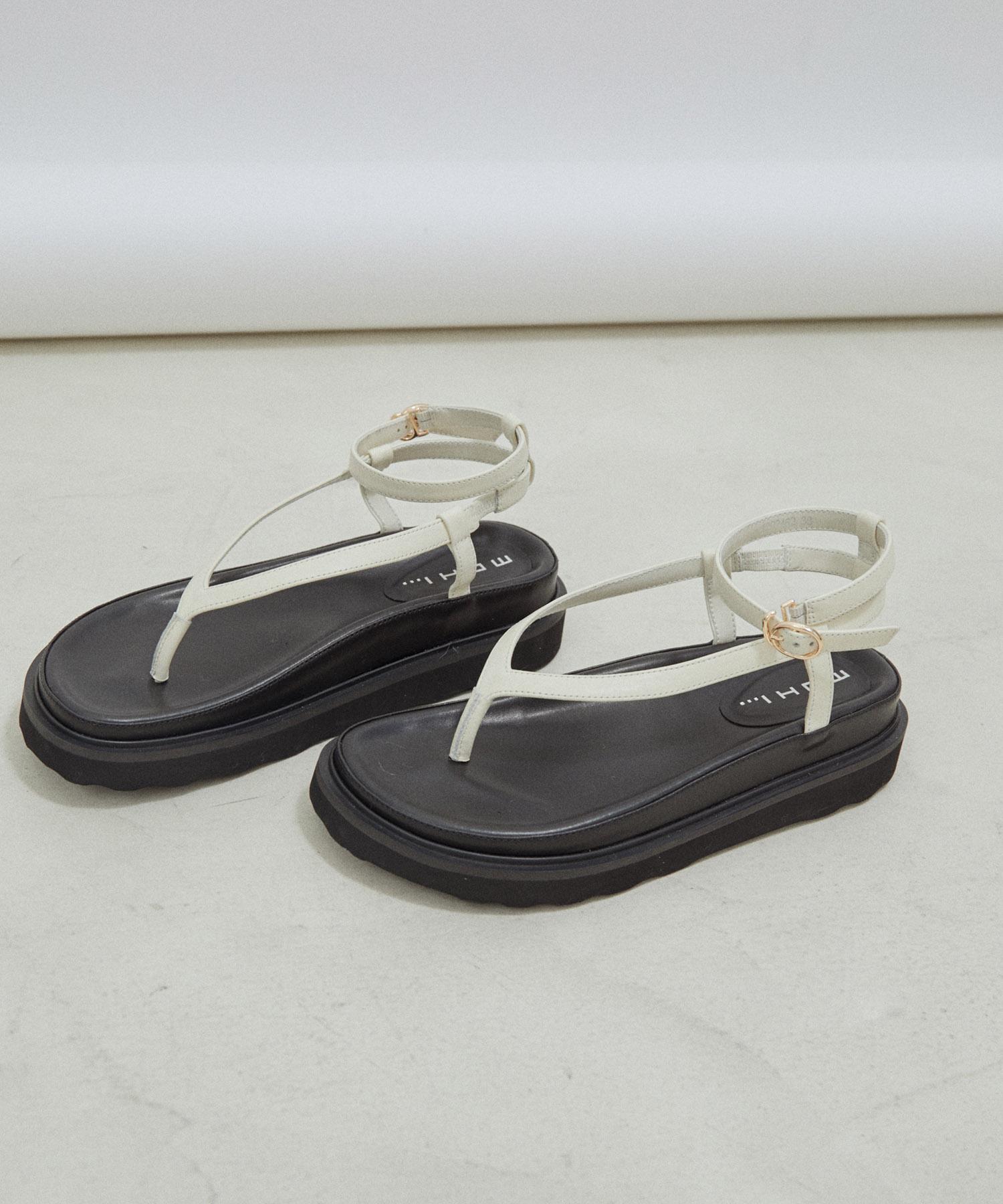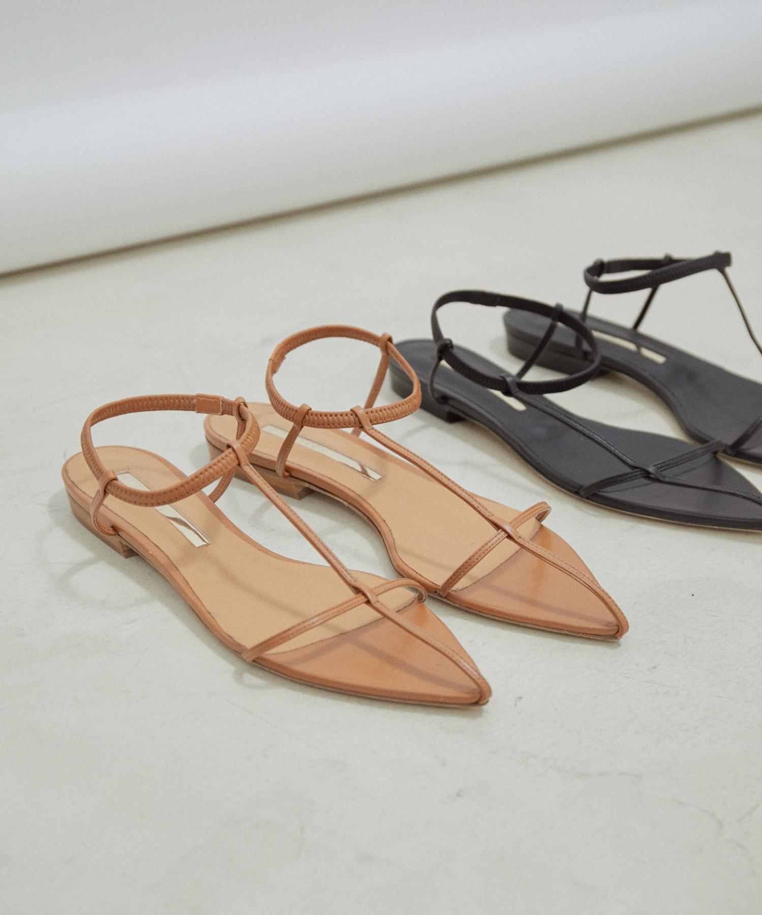 コンフォートソールに華奢なストラップをあしらったアンバランスさが今年らしいサンダル。