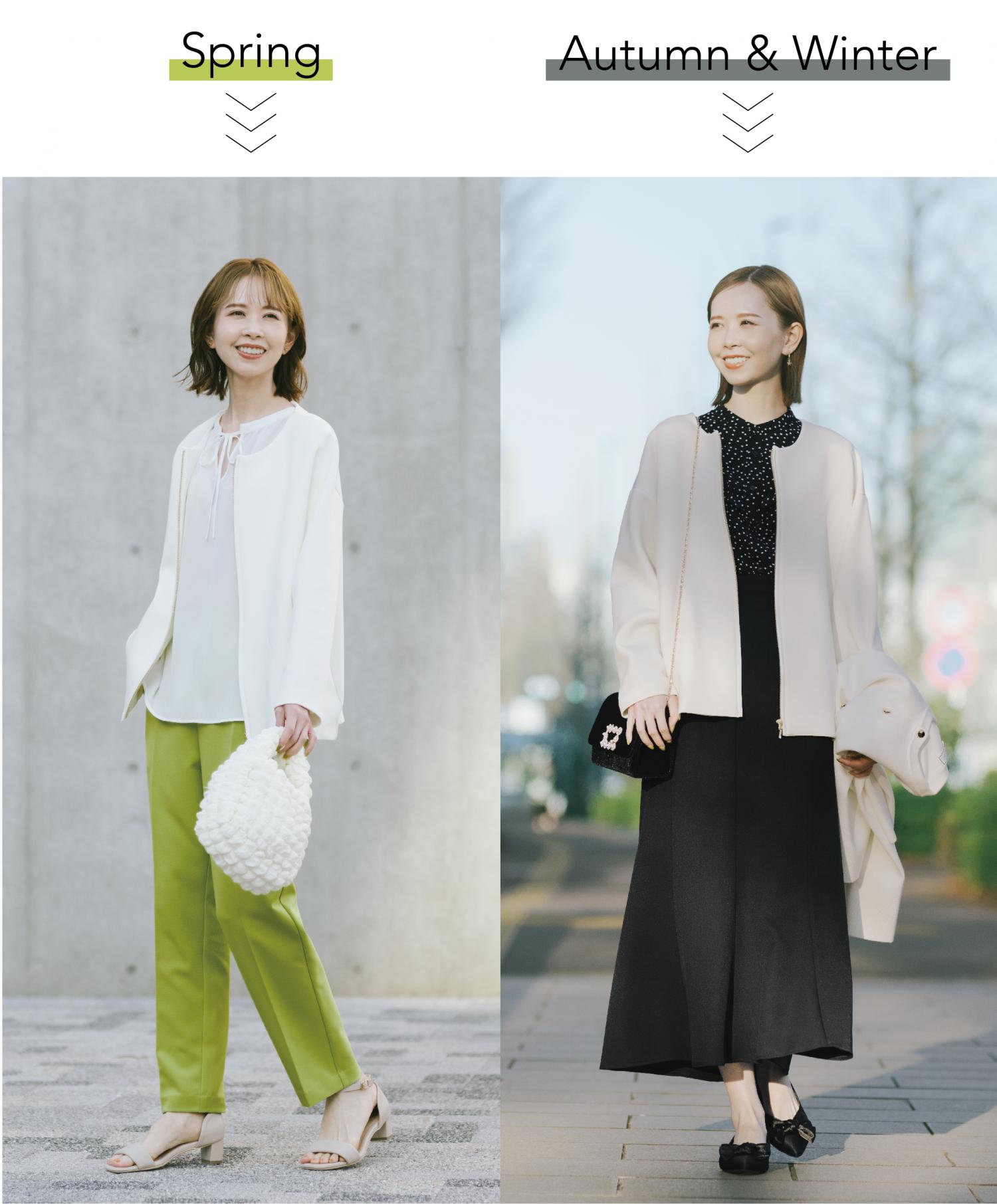 コーディネイト次第で春〜秋・初冬まで着回せ、きれいめにもカジュアルにも合わせられるマストバイアイテム。