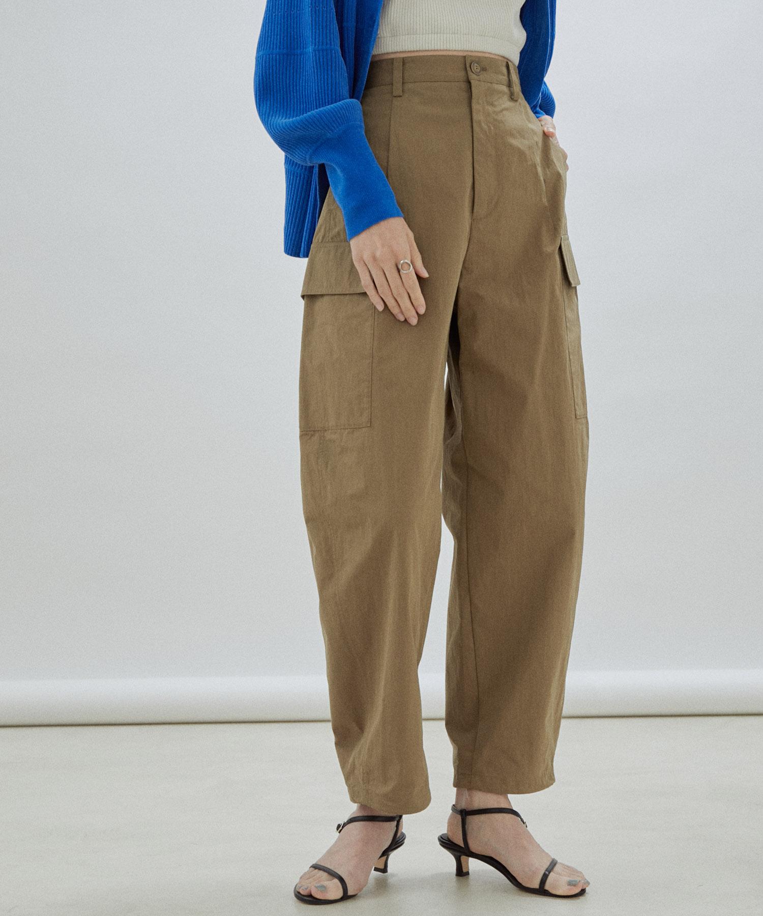 カジュアル過ぎず女性らしく着用可能な程よいボリュームと、カーブしたシルエットがポイントです。独特なシルエットは美脚効果も◎