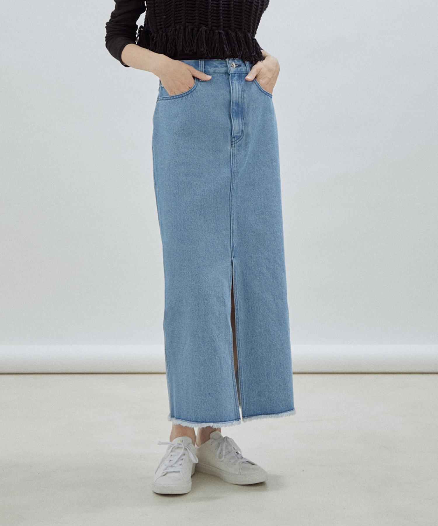 【WEB限定】[美シルエット・スタイルアップ]フロントスリットデニムタイトスカート