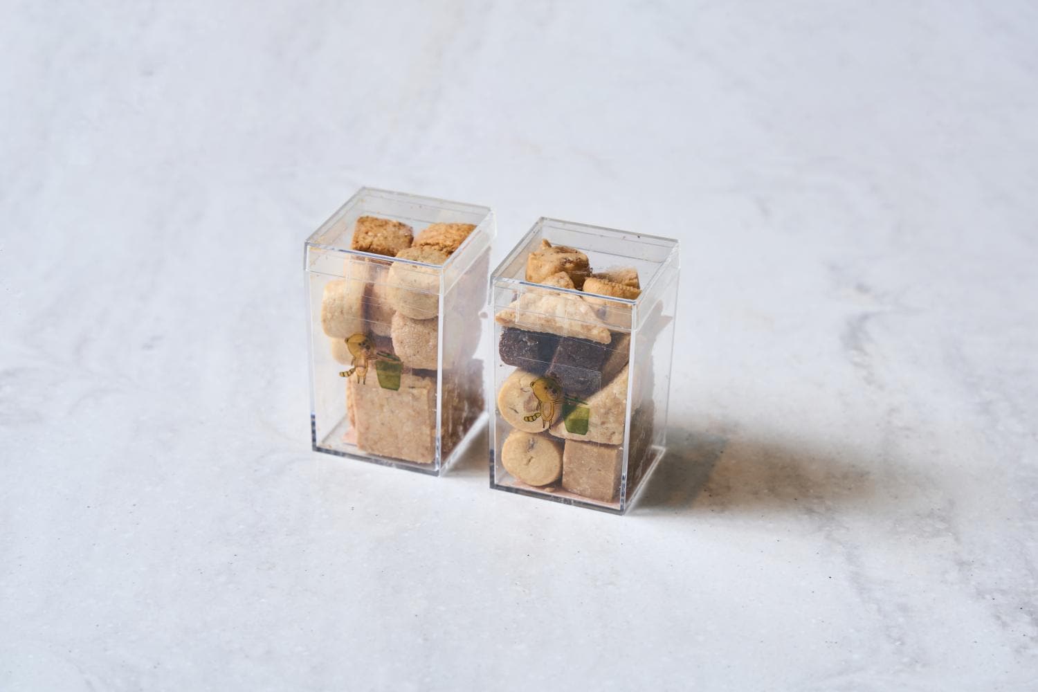神戸 三宮にお店を構える「fuminote」とのコラボクッキーが登場。オンラインでは即完売するほど大人気のお店ですが、今回は特別にアソートボックスをお作りいただきました。1種類毎に扱う小麦粉や種類に合わせ砂糖の調整がされたこだわりの詰め合わせとなっています。クッキー4種類がそれぞれ入るアソートで、2パターンのご用意となります。クッキーケースには、ナガオコウジさんのイラスト「fuminoteクマちゃん」シール付きです。
