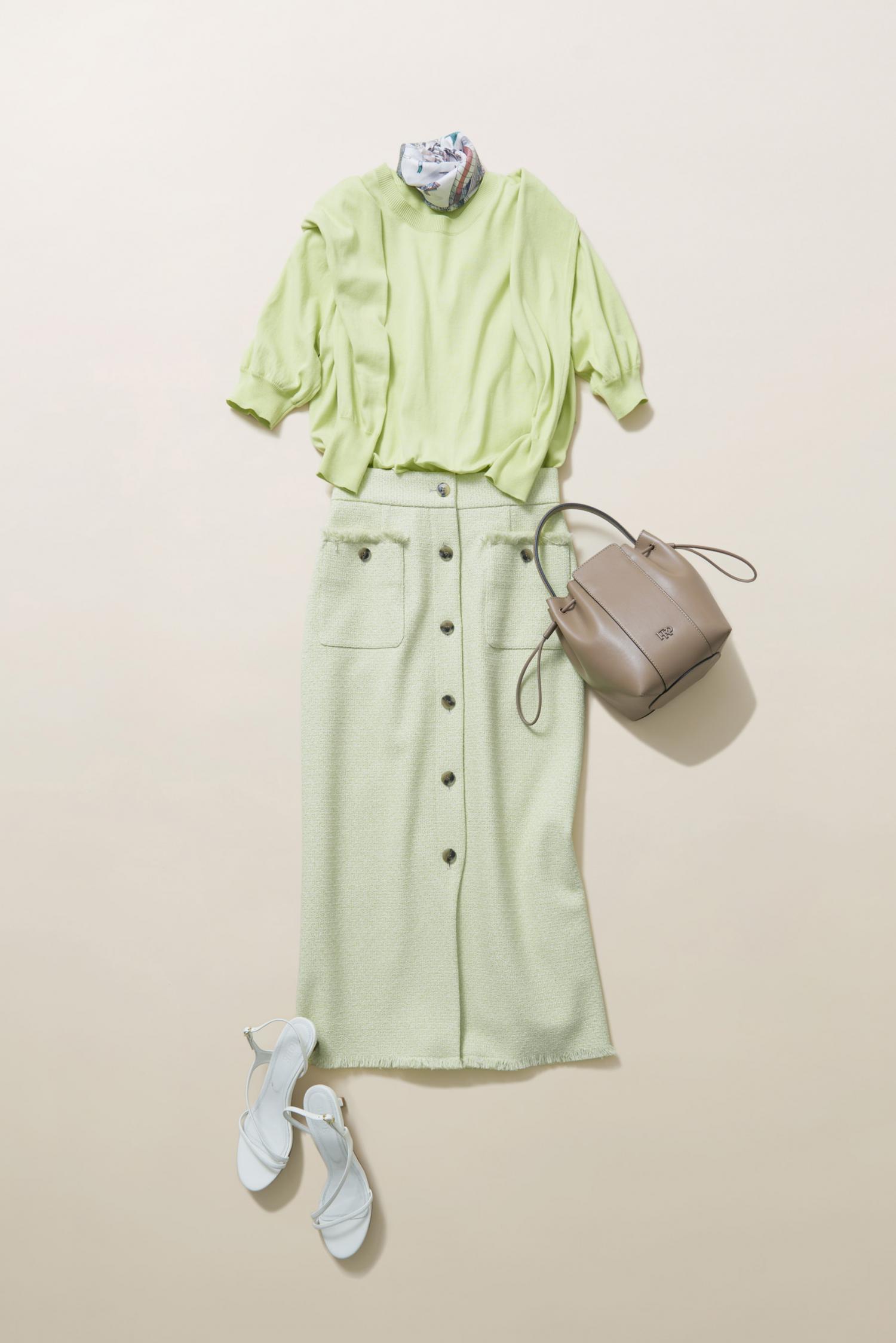 注目の春色を取り入れたおすすめの通勤スタイルとカジュアルスタイルをご紹介いたします。