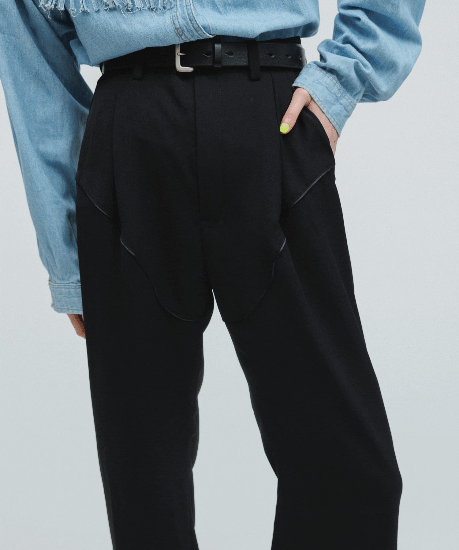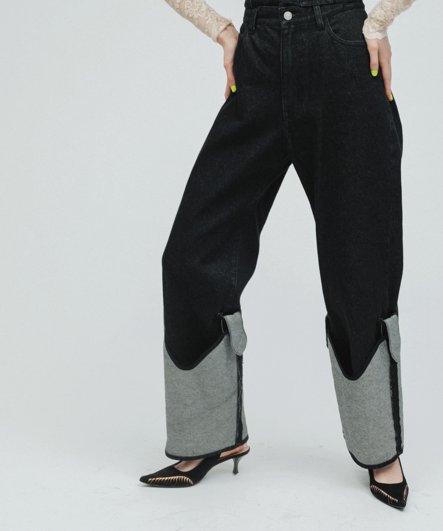ロールアップデニムパンツをウエスタンブーツで履いてるようなディテールに変化をもたせたアイテム。