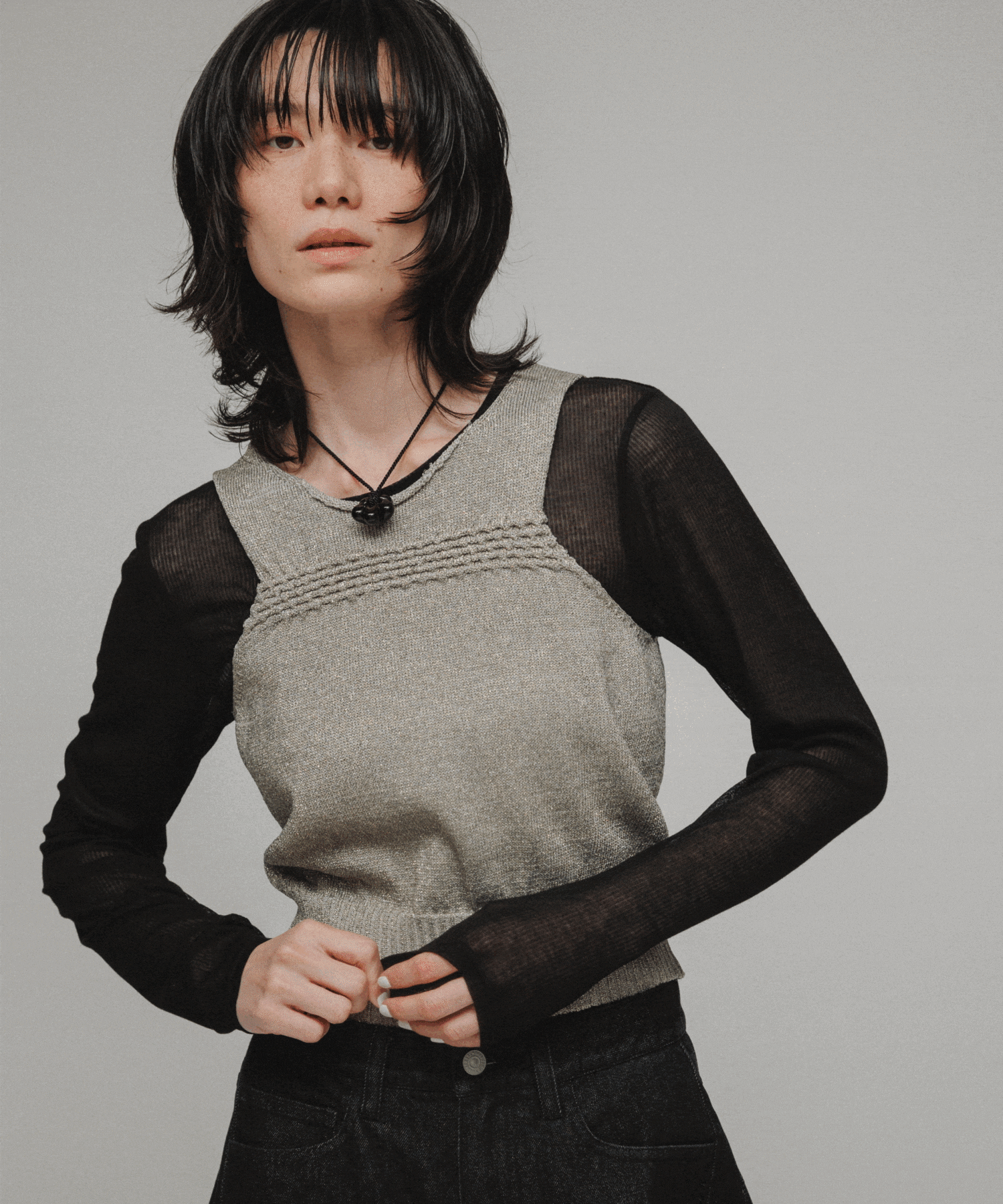 ニュアンスのある素材と表情をプラスして、新しい着こなしを楽しんで。