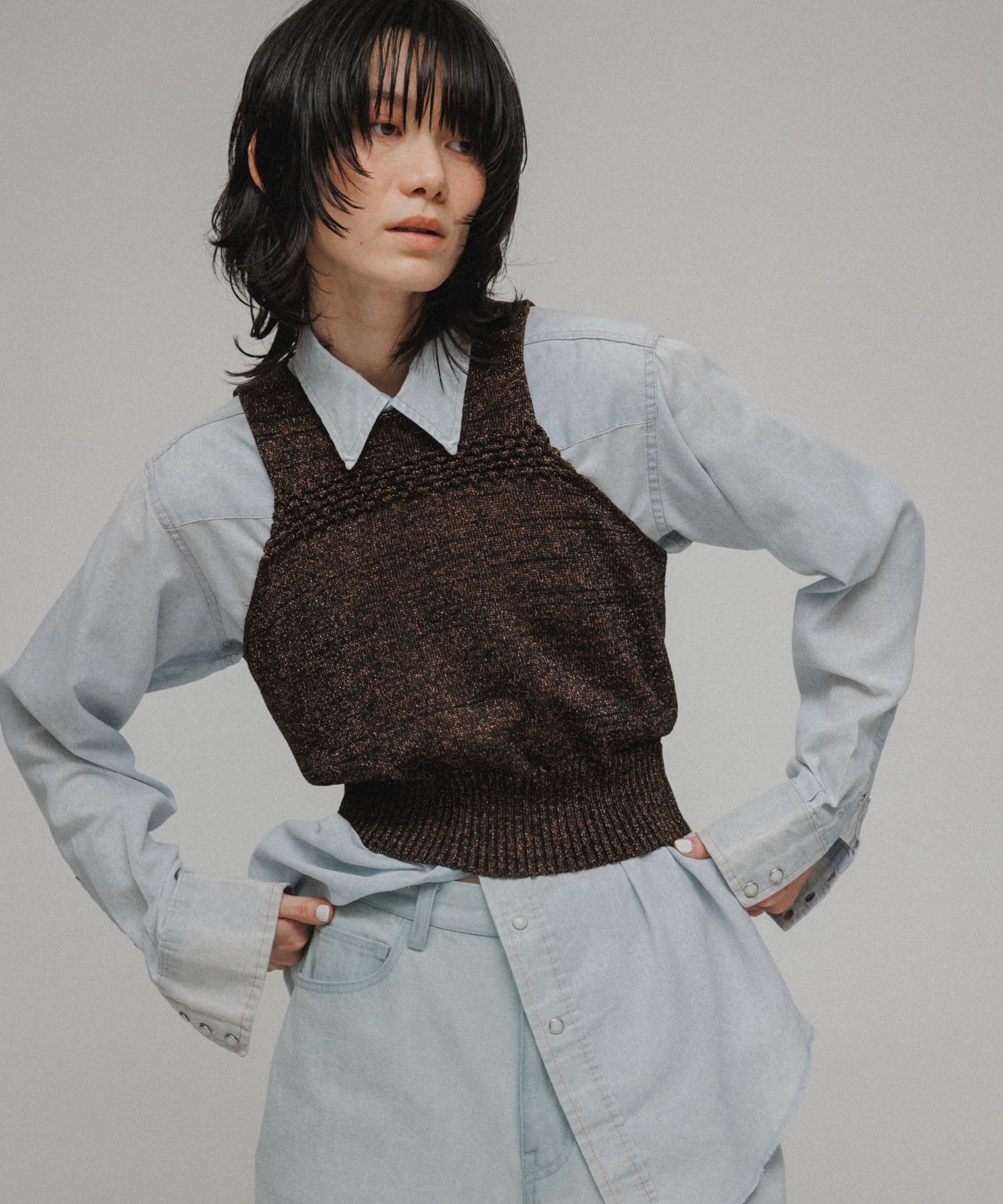 〝AMERICAN SLEEVE GLITTER KNIT VEST〟