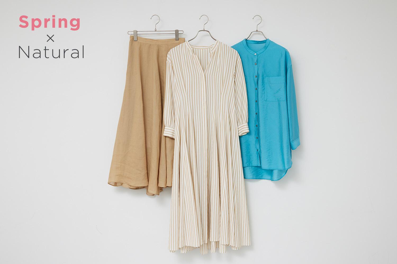 (左)布をたっぷりと使ったボリューム感が魅力のサーキュラースカート。しっかりとしたフレームを持つナチュラルなら、ボリューム感に負けず、こなれた雰囲気に着こなせます。ナチュラルな風合いのラミー素材も得意。