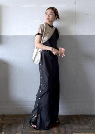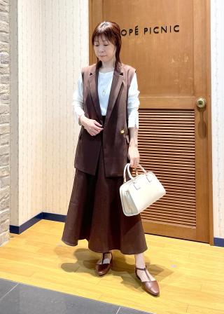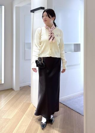 (左)コーデの軸となるベッシックなカラーこそ、似合う色をおさえておきたい。スプリングがチェックしたいのは、カフェオレのような明るいベージュ。歩くたびにふわりと揺れる、シアー素材のサーキュラースカートなら、スタイルに軽やかさもプラスされて◎。