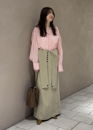 (中)ロング丈と裾のボリューム感が、まさにナチュラル向きのシャツワンピース。1枚でトレンド感のあるスタイルが完成します。オーバーサイズが似合うので、あえてワンサイズアップして、ラフに着こなしても◎。