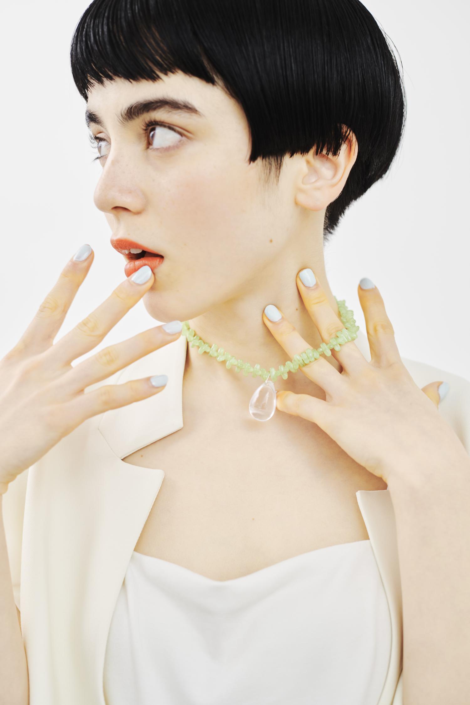 フランスのハンドメイドジュエリーを展開するブランド【Sisi Jois(シシ ジョイア)】のネックレス。ガラスならではの、透明感のある輝きがアクセントに。