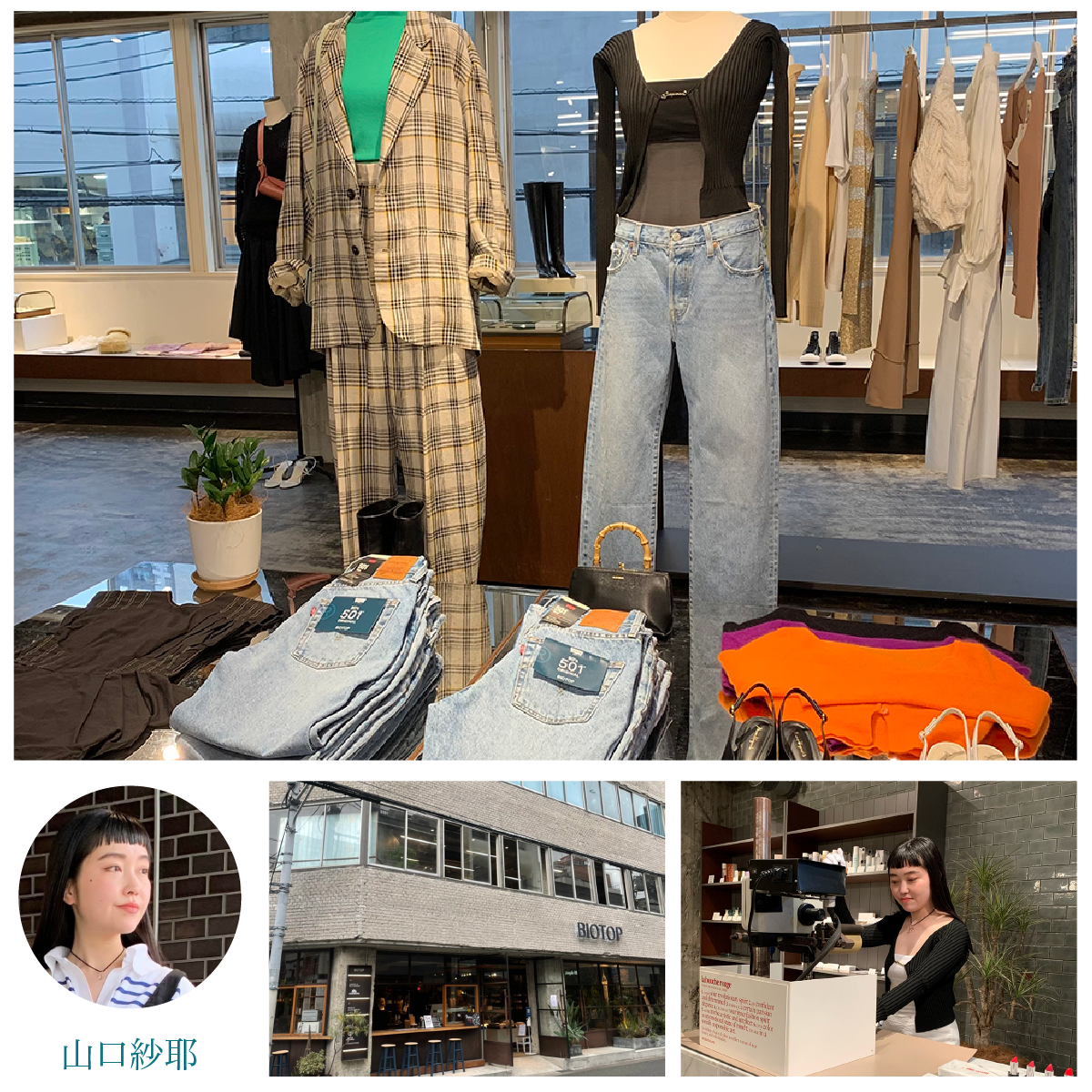 アーバンリゾートがコンセプトのBIOTOP。ファッション、グリーン、フード、ライフスタイルコンテンツの揃った南堀江のランドマークです。1F、2Fでは世界中のブランドからセレクトされたお洋服、オーガニックナチュラルコスメ、生活雑貨をラインナップ。街のコーナーに位置するCORNERSTANDでは一杯ずつ入れるハンドドリップコーヒー、屋上のROOFTOP RESTAURANT CUBIERTAでは緑溢れるテラスにて、心地良い風の吹く中様々な種類のピザ料理をメインに料理をご堪能頂けます。また店内いたる所ある植物を楽しんで頂きながら、1FのBIOTOP NURSERIESにてご自宅にぴったりのグリーンをお選び頂くのもおすすめです!
