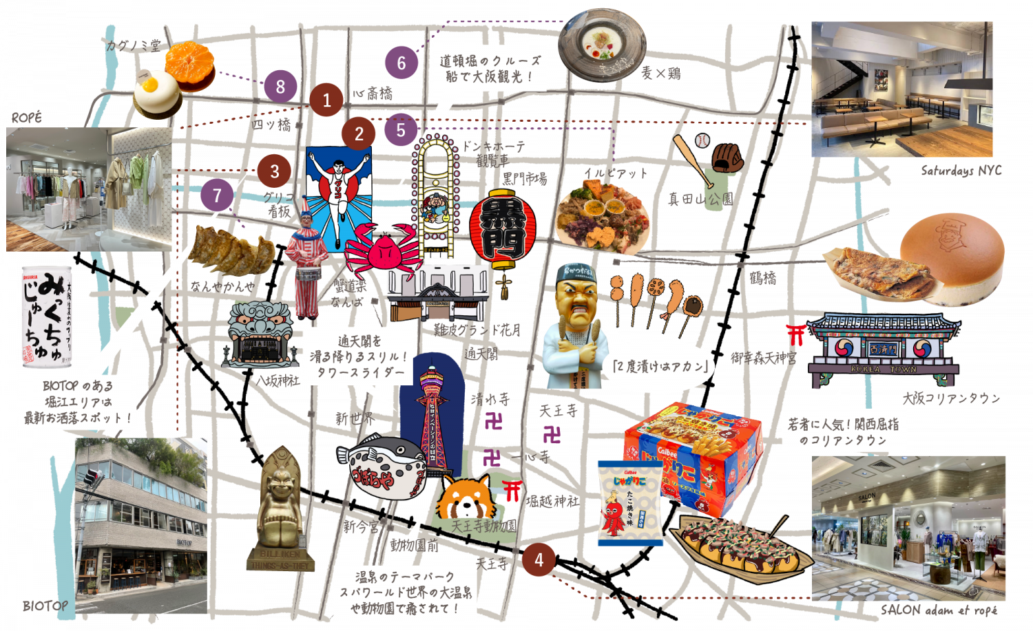 今回はそんな大阪ミナミのROPÉ、Saturdays NYC、BIOTOP、SALON adam et ropéで働く4人のスタッフに、街の魅力を聞きました。
