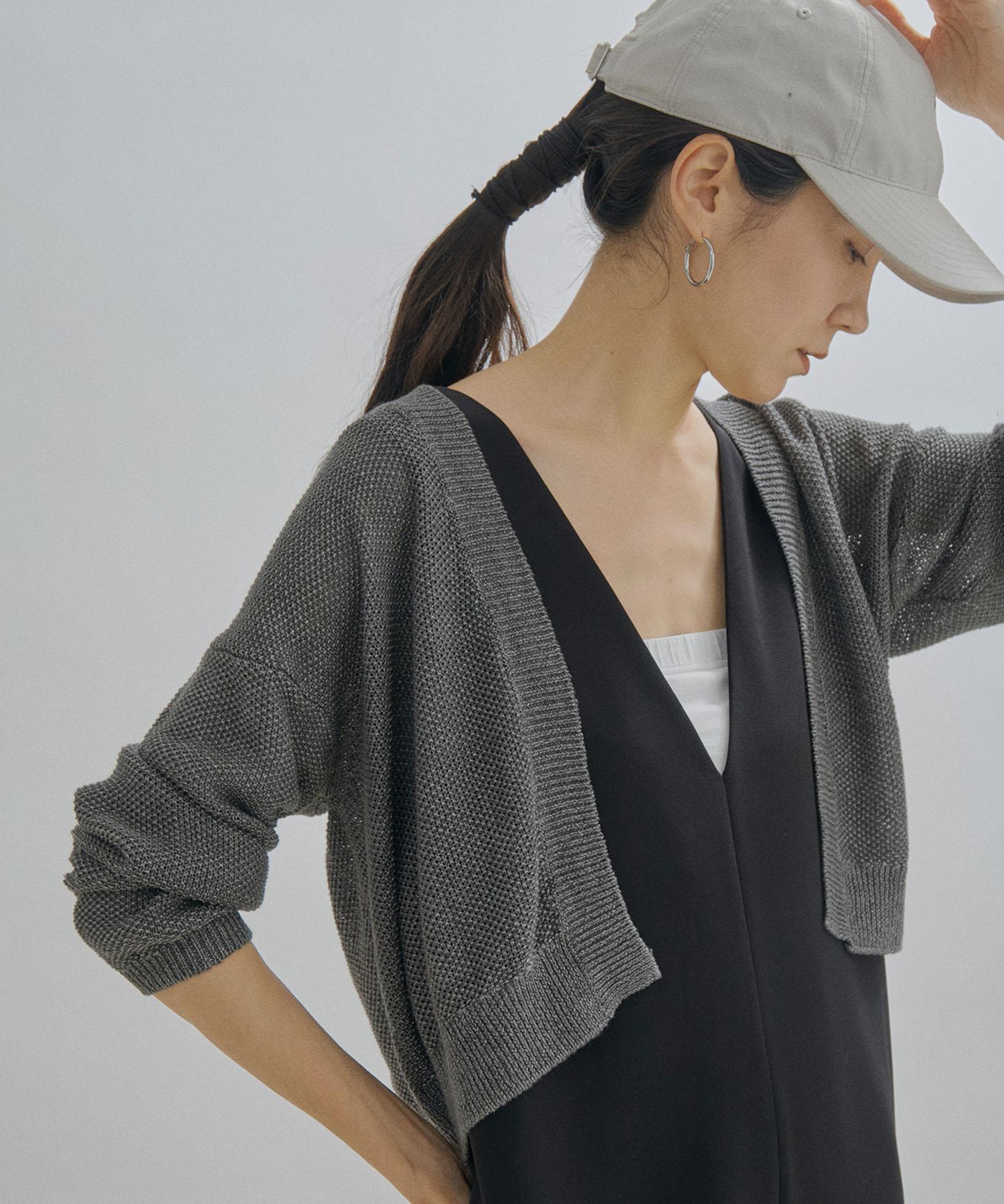 清涼感のあるリネン素材を使用したショートカーディガン。スッキリとしたショート丈でバランスの取りやすい1枚です。