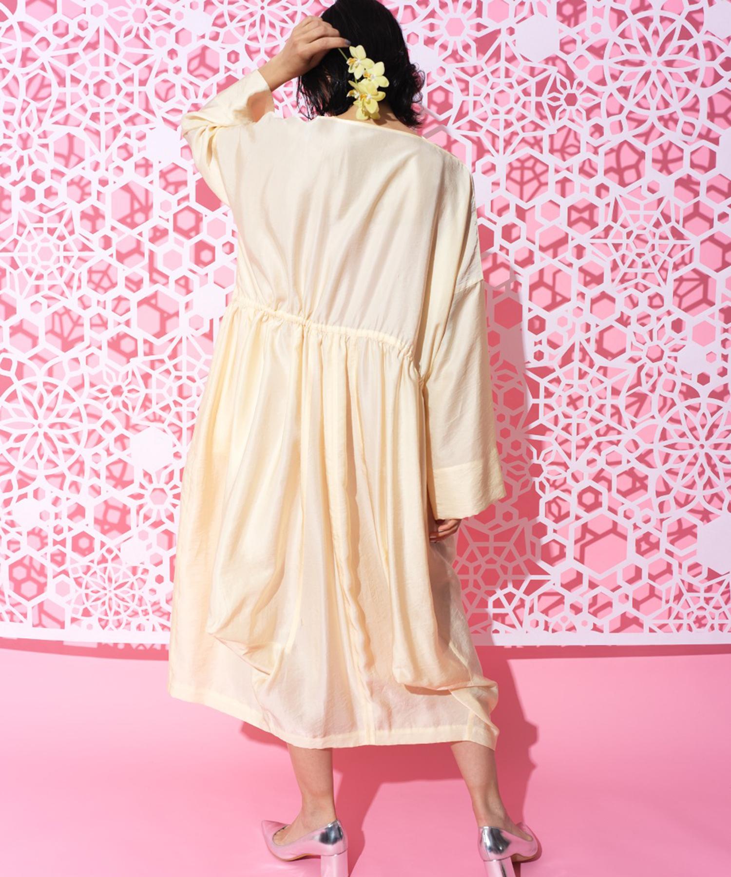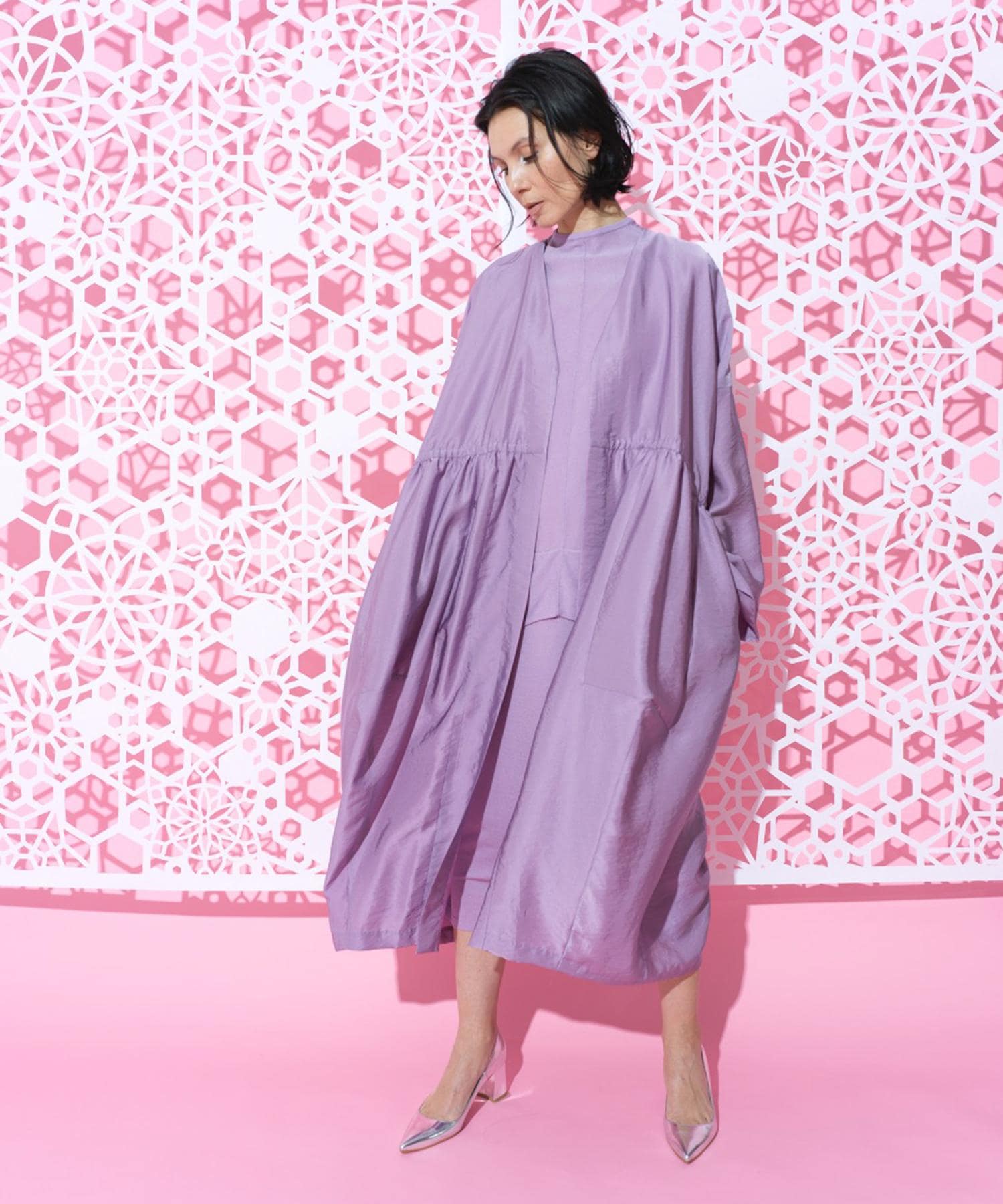 ウエストにはストレッチ紐が付いて可変の効く春のガウンコートドレスです。