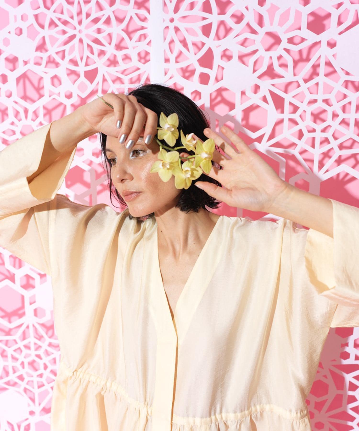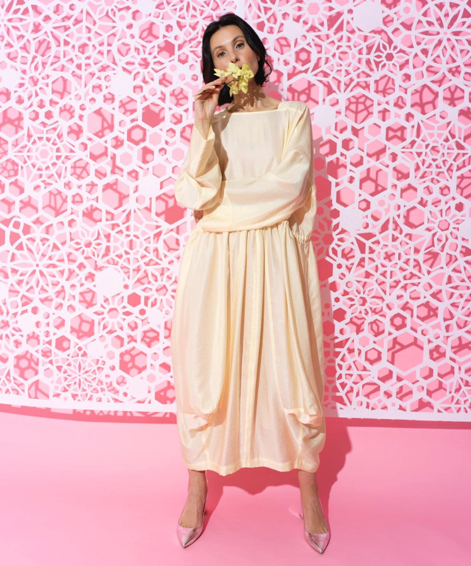 羽衣のように軽い素材が風に吹かれ、心踊るような軽やかな着心地。