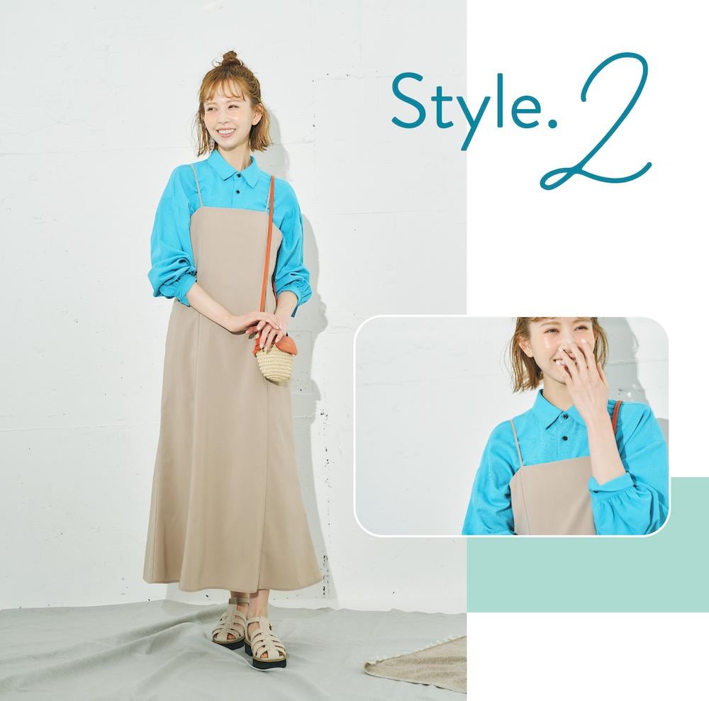 カジュアルになりがちなリネンシャツはキャミソールワンピースと合わせれば大人可愛く仕上がります。ボタンを上まで閉める分、袖をまくって肌を見せると抜け感も出るのでおすすめ。