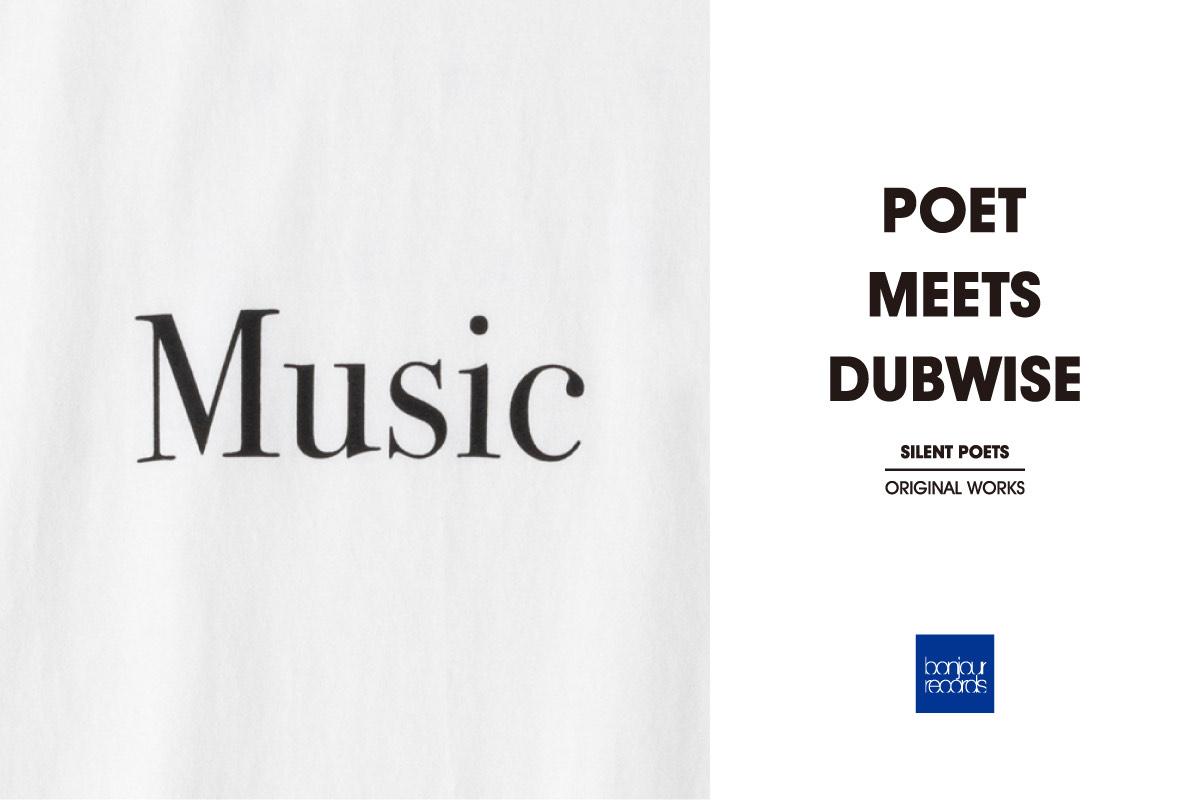 メランコリックでエモーショナルなDUBサウンドを表現するSILENT POETS(サイレント ポエツ)こと下田法晴によるオリジナルブランド、「POET MEETS DUBWISE(ポエトミーツダブワイズ)」。本ブランドは1990年代からDJ、ミュージシャンとして活動してきた下田氏のキャリアそのものが表されたプロジェクトで、機能美や着心地を必要最小限にとどめたベーシックなアイテムにSILENT POETSから連想されるキーワードや曲名をタイポグラフィとしてデザイン。感覚的に染み付いたコラージュやグラフィックデザイン的アプローチに基づくプロダクトは、流行に左右されない表現で独自のスタンダードを提案している。