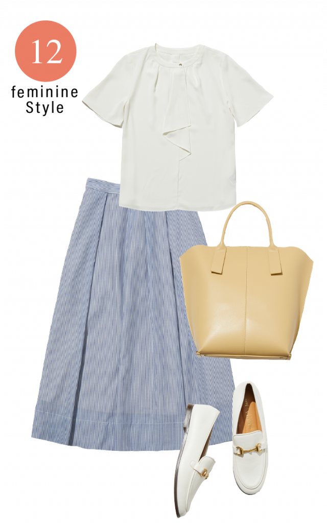 清潔感があって、なおかつ華やかさを演出してくれるボウタイブラウスは、夏のオフィススタイルの定番。
