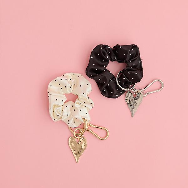 ハートチャーム付きドットシュシュチャーム ¥2,497(税込)
