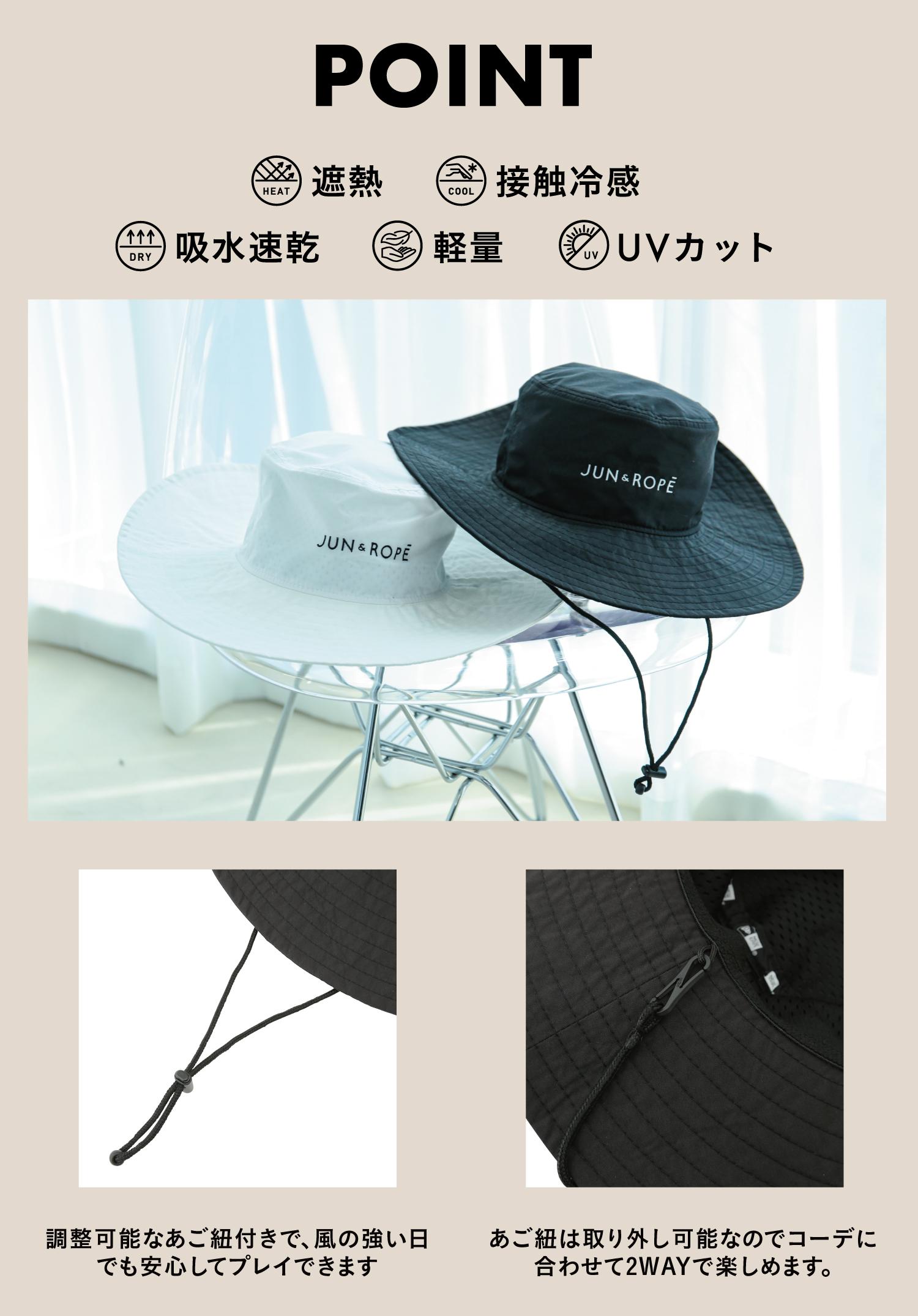 JUN&ROPE'よりNew Era®コラボのバケットハットが新登場!コーディネートに取り入れるだけでぐっと今年らしい着こなしが叶う、今季のマストアイテム!UV機能付きで幅広のツバがしっかりと顔回りの日焼けをカバーしてくれるだけでなく、接触冷感や吸水速乾など夏に嬉しい機能満載。ゴルフだけでなく普段使いにも最適なバケットハットは1つ持っておくと大活躍間違いなし!