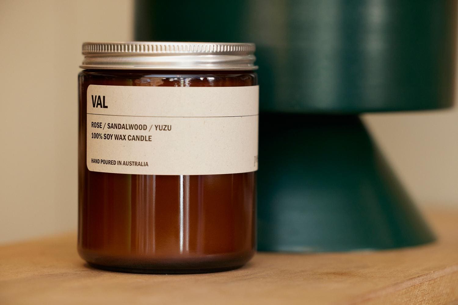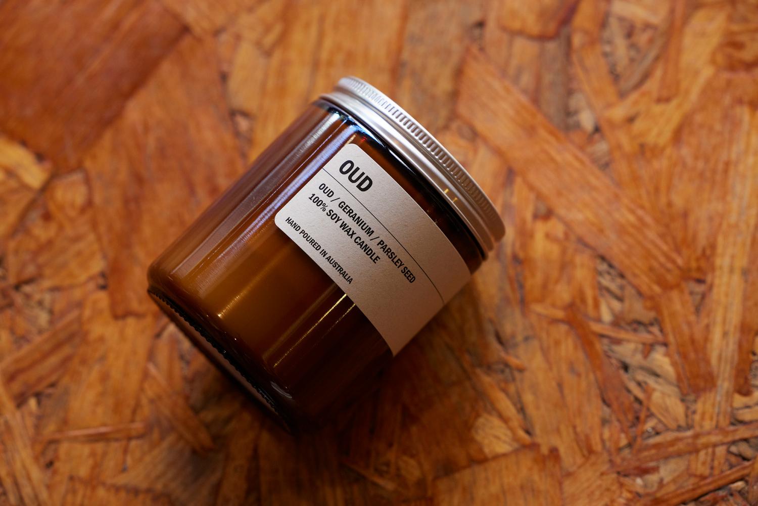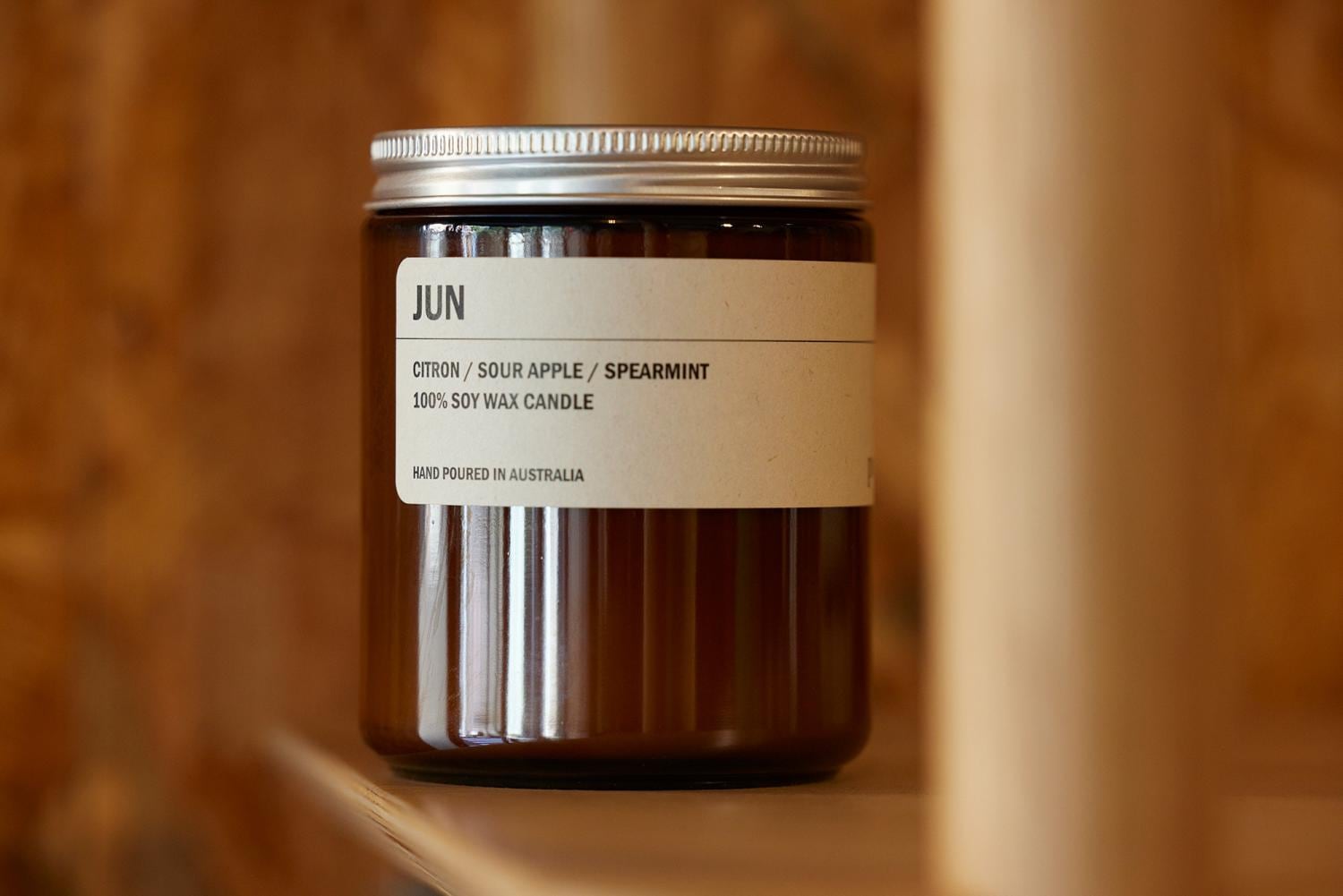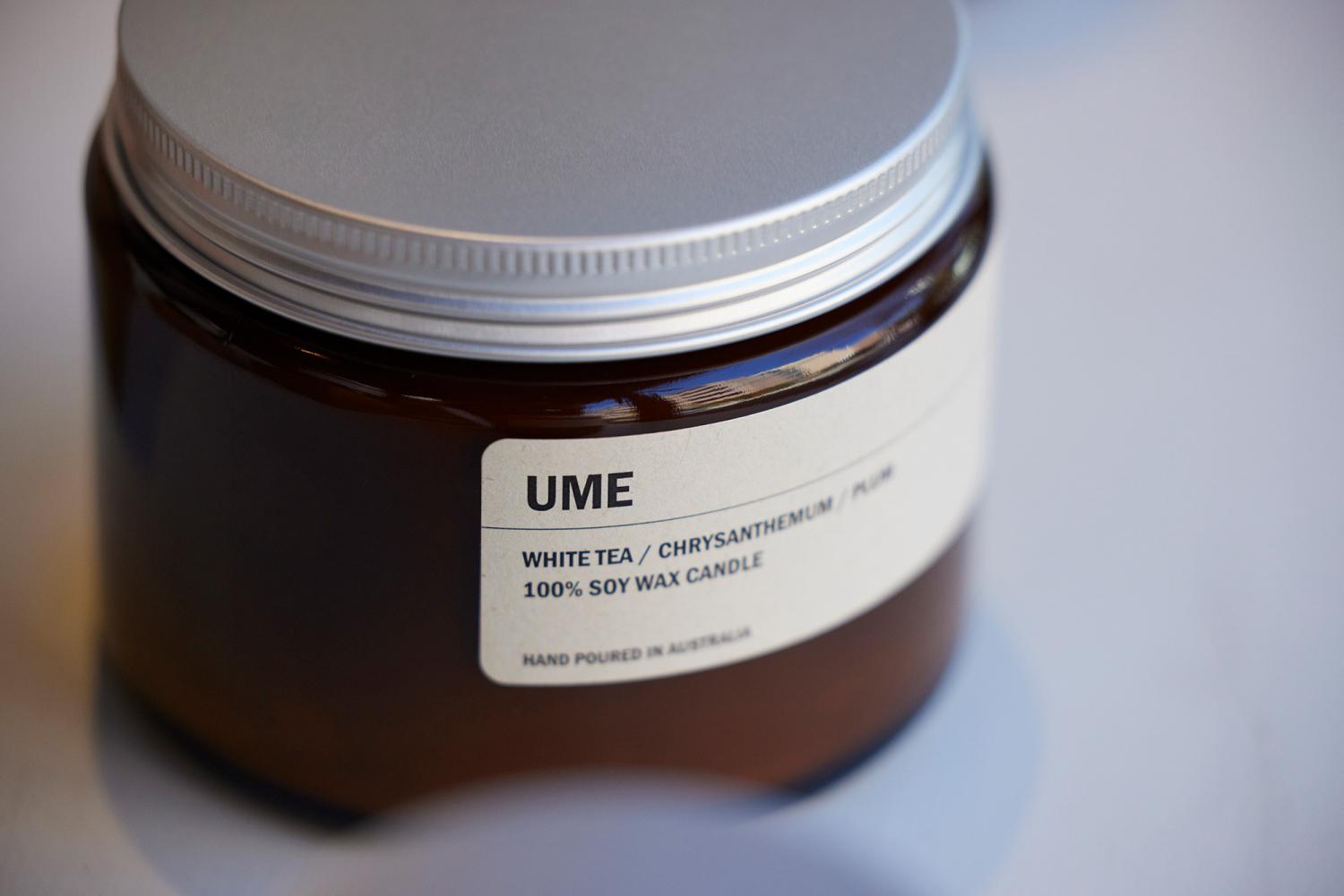 「ボトルカラーは、アンバーとクリアーの2種。アンバーがはじめにでき、もっとモダンでクリーンなイメージを好む人に向けてクリアーを作りました。2種のイメージに合わせて、アンバーはクラフトの箱、クリアーは白の箱とパッケージにも変化をもたせています。クリアーのボトルは、キャンドルを使い終わった後にウィスキーグラスとしても活用できるんですよ!アンバーの蓋はリサイクルできるアルミ製。ラベルはサトウキビのパルプからできていて、コンポスタブル(生分解性、堆肥化も可能)なんです」。(アシュリー)