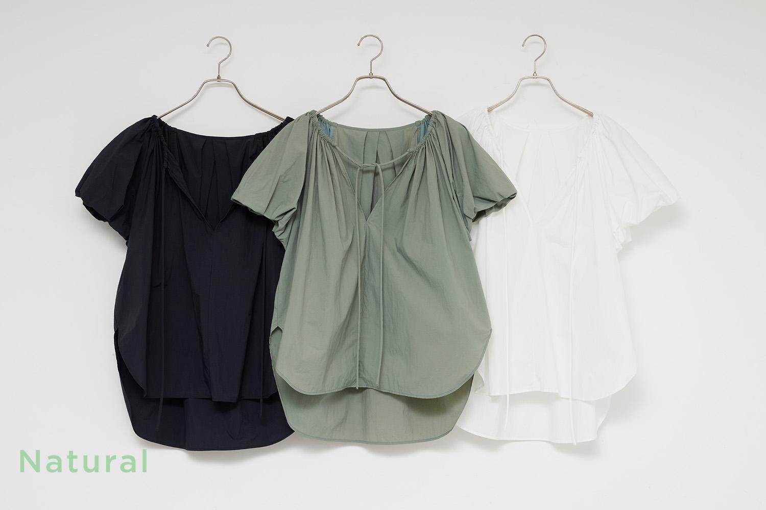 カジュアルが得意なナチュラルでもフェミニンなアイテムが着たい! そんなときは、適度にボリュームのあるデザインを選ぶのがコツ。ギャザーをたっぷ りあしらったバルーンスリーブのブラウスは、甘すぎずモードな雰囲気に。ヴィンテージ感のある素材もナチュラルにフィット。ボトムはデニムやワイドパンツをあわせて、ラフにまとめて。