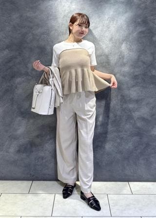 手編みのような風合いやレース素材をクールに着こなせるのも、ナチュラルの特徴。編み目が繊細なものより、凹凸を感じる幾何学のような模様が似合います。ナチュラルなら、ワイドパンツでラフに取り入れるのが正解。Tシャツと合わせるだけで、こなれ感のあるスタイルが完成します。ロングワンピと重ねて裾からちらりとのぞかせてもOK。