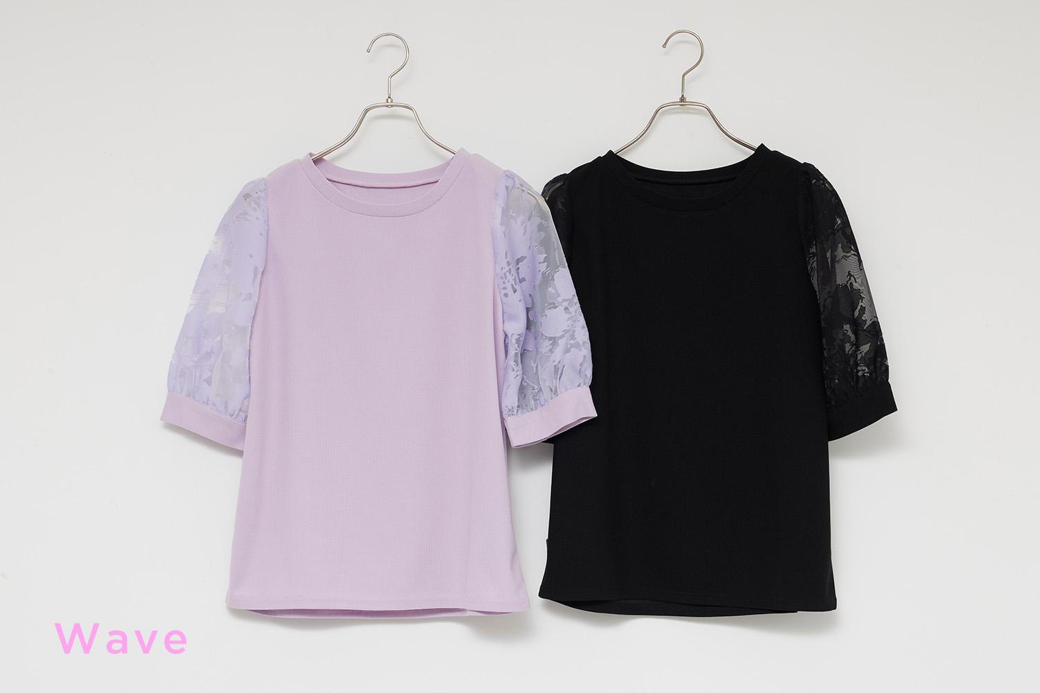 シアー素材のボリュームスリーブで、ウェーブの魅力をアピール