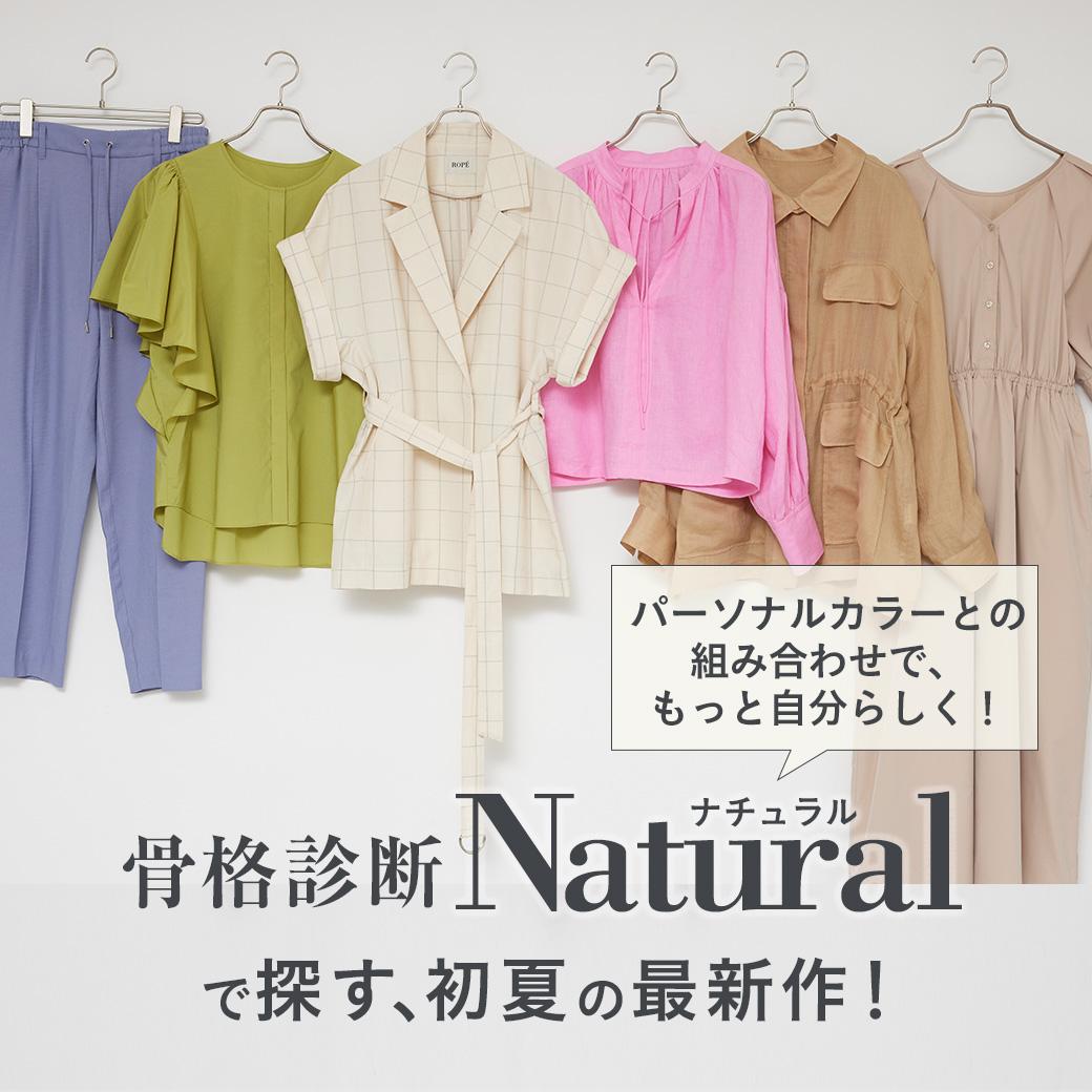 肩の力が抜けた、カジュアルでリラックス感あるアイテムが似合うナチュラルさん。この時期にぴったりのリネン素材や、ゆったりとした気持ちの良いウエアで初夏を満喫して。さらに、骨格タイプ・ナチュラルに、パーソナルカラーを掛け合わせたアイテム選びもチェックしてみて!
