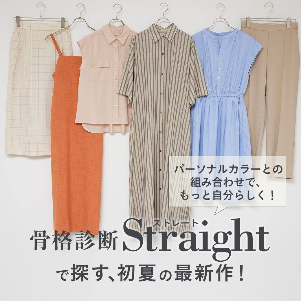 立体的で厚みのあるボディを持つストレートさん。人気のシャツタイプのワンピースなど、この時期にぴったりのウエアでスタイルアップ! さらに、骨格タイプ・ストレートに、パーソナルカラーを掛け合わせたアイテム選びもチェックしてみて。
