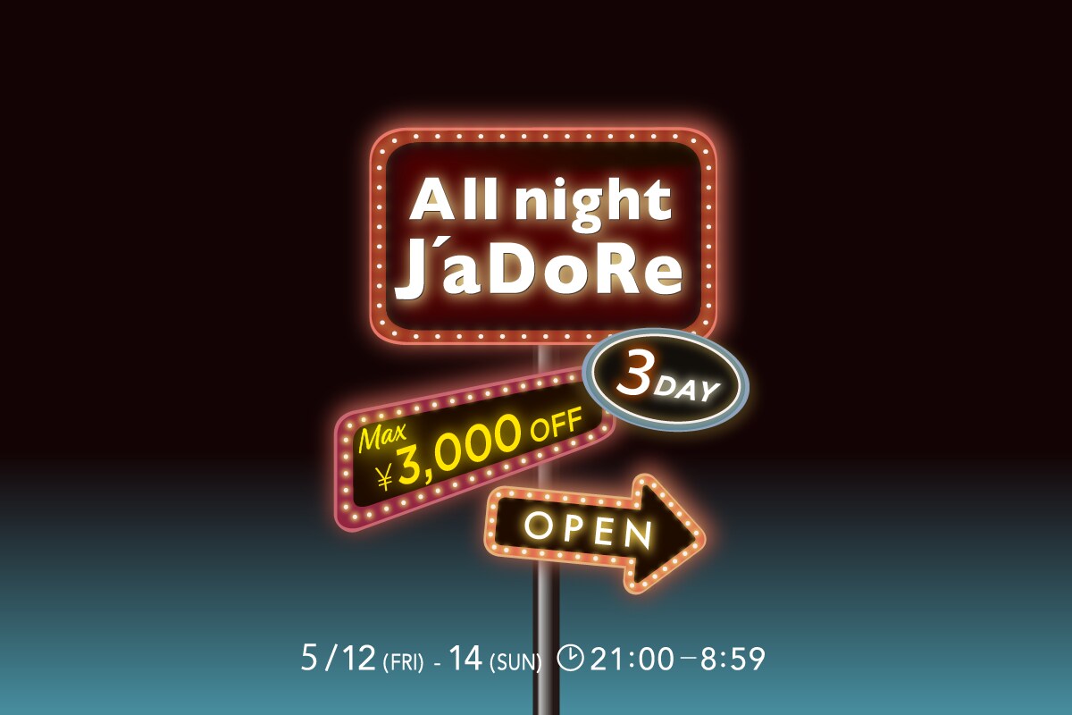 【最大3,000円オフ!】3日間連続・12時間限定クーポン!オールナイトジャドール開催!