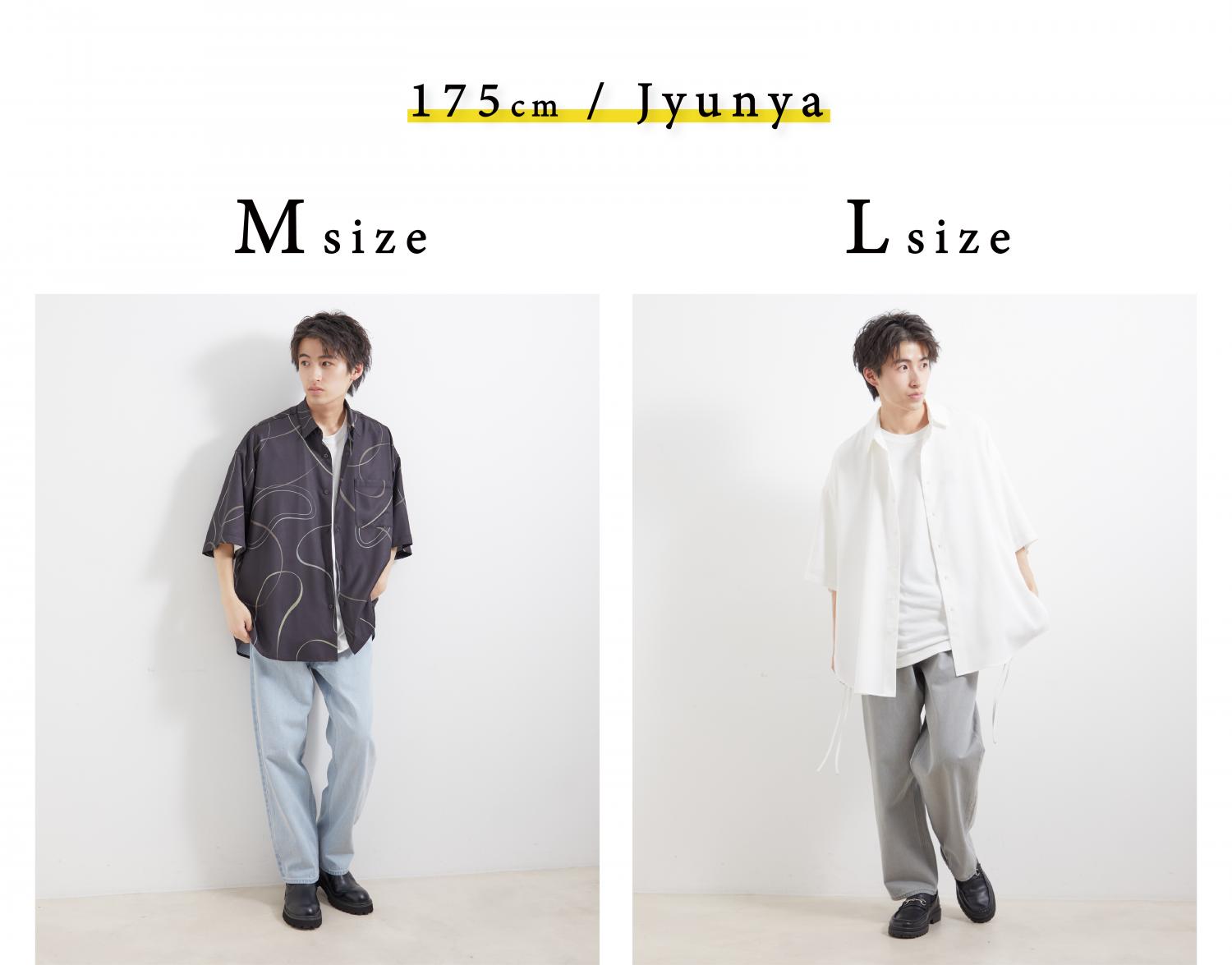 全体的にバランス感を考えつつ、色味ではモノトーン、シンプルになり過ぎないよう柄のシャツを取り入れたのがポイントです!