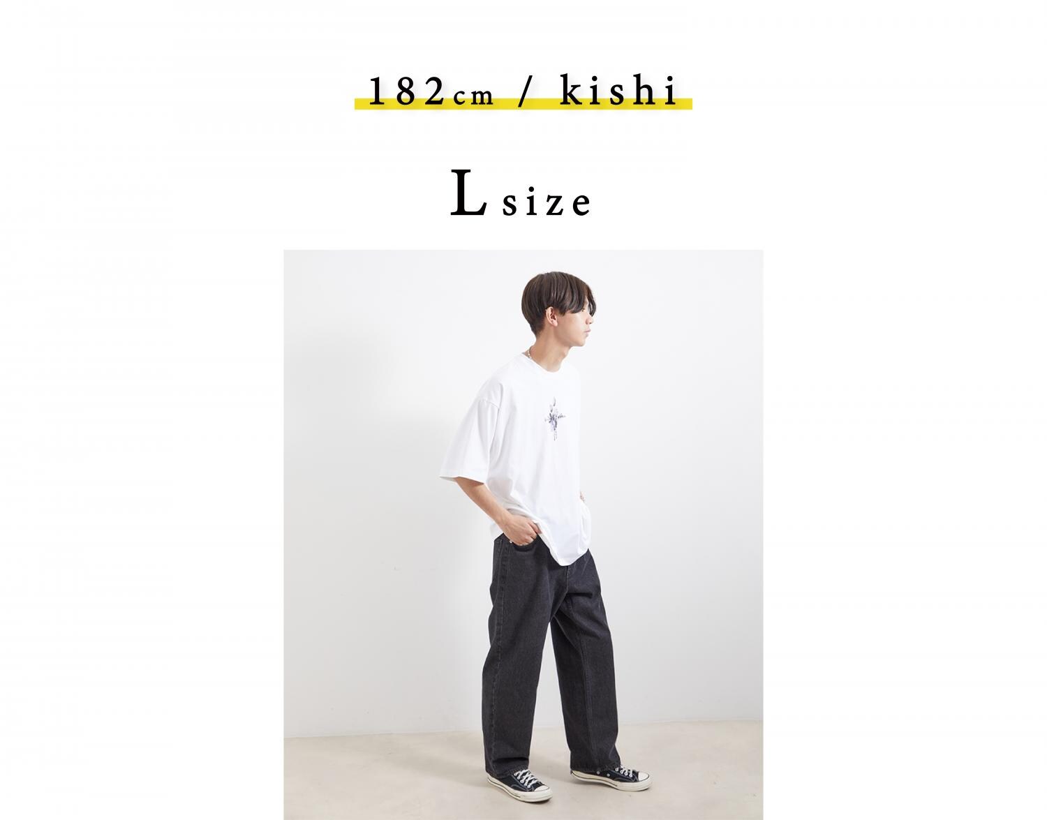 ワンクッションおいてルーズなスタイルでいきたい時はLです!すっきりした形のデニムなのでどんなトップスでもバランスがとれて合わせやすいです!
