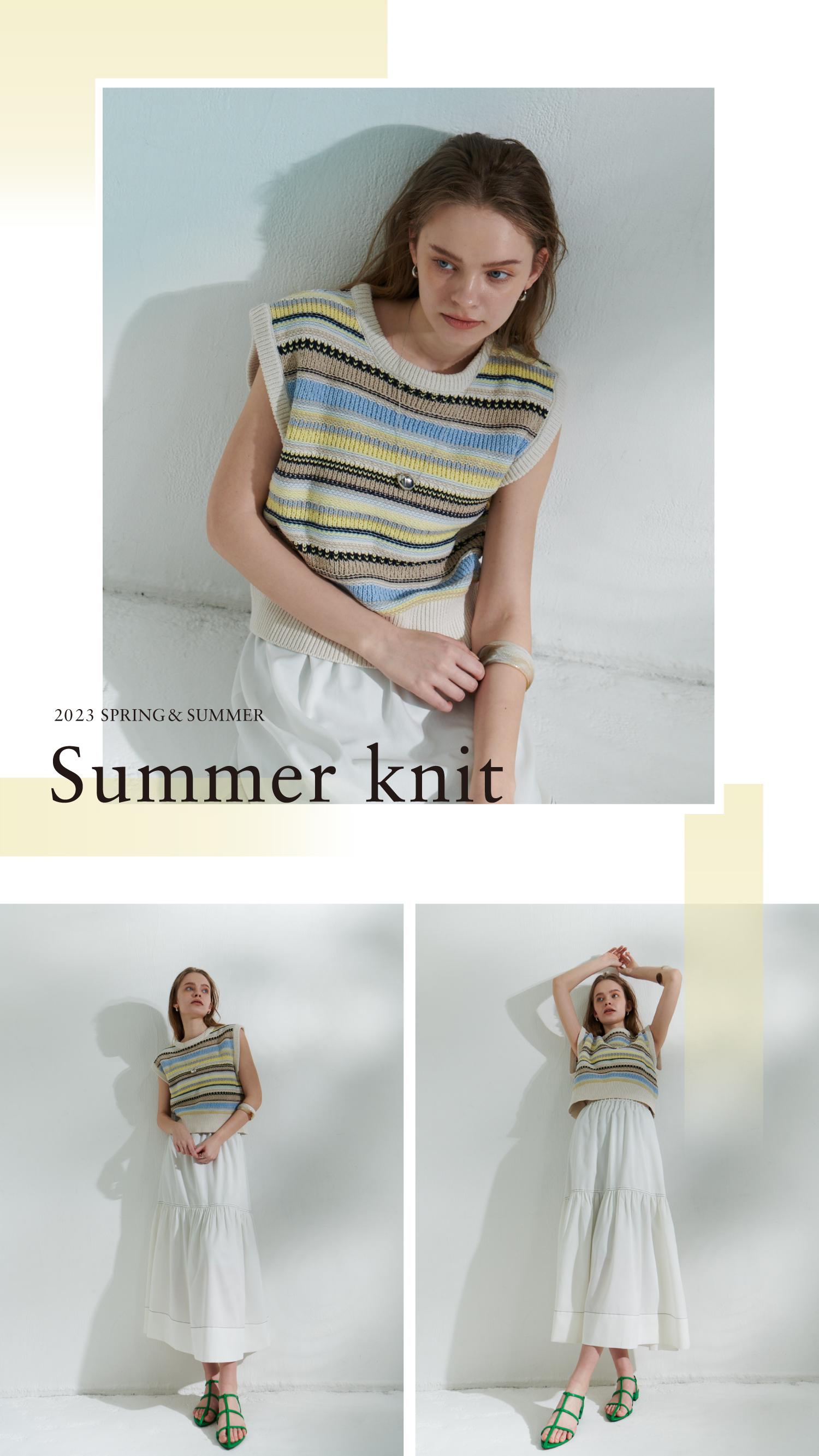 オンオフ問わず着用できる、気軽に取り入れられ、それでいて大人っぽく仕上がるサマーニット。