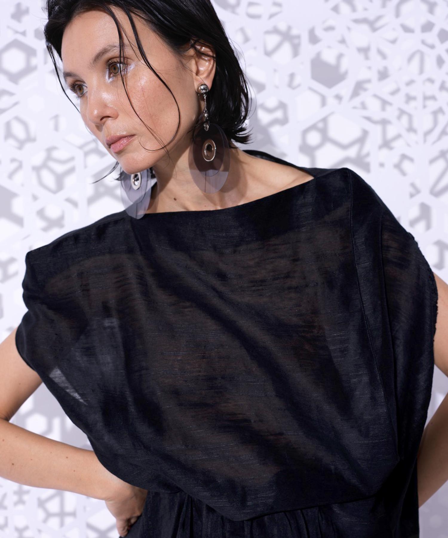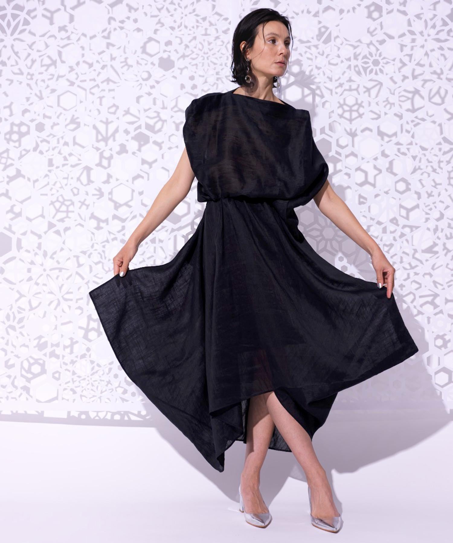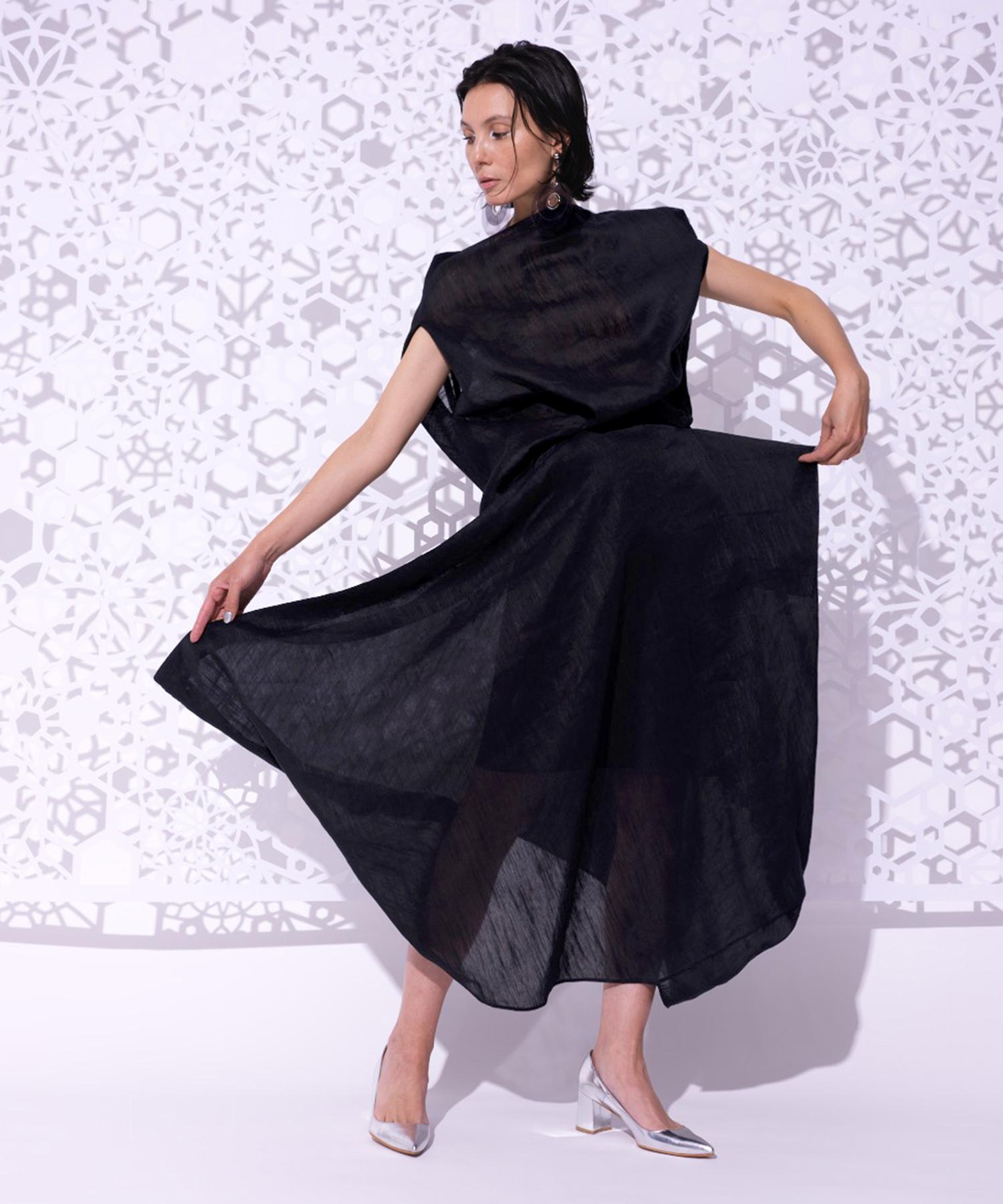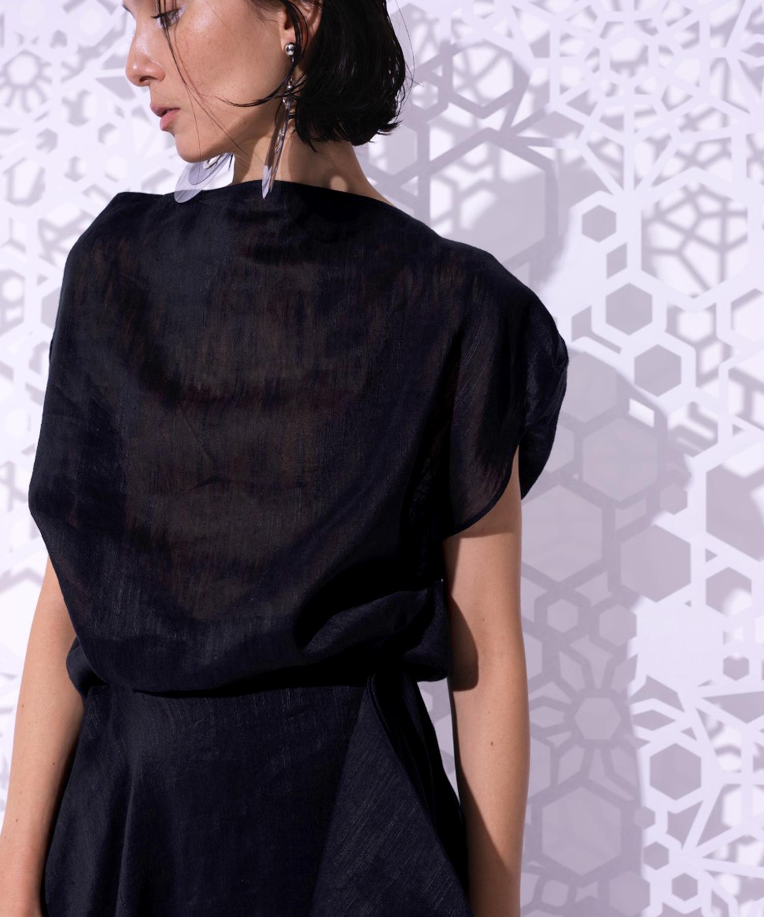 一枚の布をトルソーに巻き、オートクチュールのように、立体的に仕立てました。