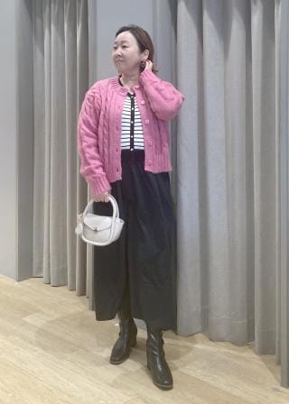 シンプルなデザイン、ジャストサイズが得意なストレートが、大きく個性を発揮できるのが柄。コントラストのある大柄を着ると華やかさがアップします。ドッドなら、大きめを選ぶのが正解。本来フレアスカートは苦手ですが、適度にハリ感のある素材ならすんなり似合います。得意なシンプルアイテムと合わせて、スカートを主役にしたコーデを楽しんで。