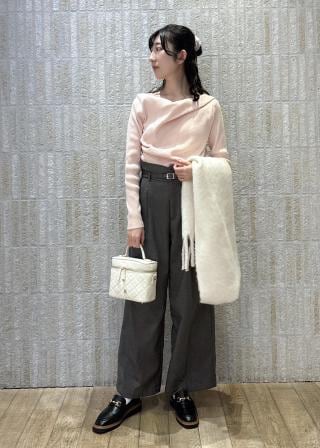 (右)シワになりにくいさらりとした素材で、きれいなIラインをつくるワイドパンツ。脚長効果が期待できるうえに、接触冷感機能付きで夏でも肌離れよく軽い履き心地なのも魅力です。スタイルをパッと華やかにするビビッドなピンクは、ウインタータイプ向き。
