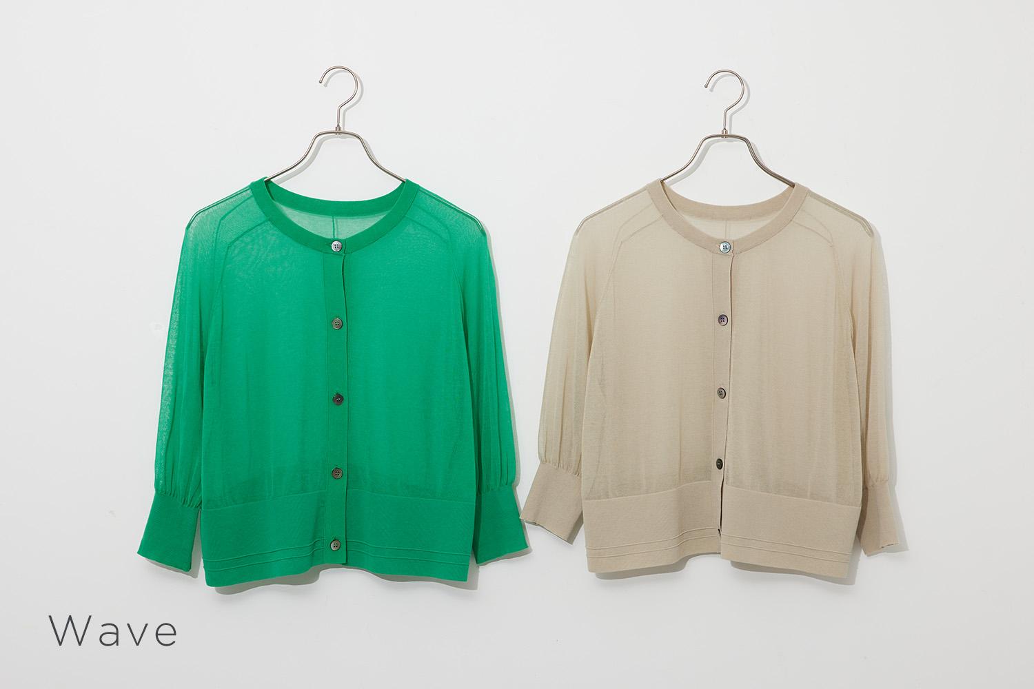 ウェーブに必須のシアーカーデは、2WAY 仕様で着こなしに変化を