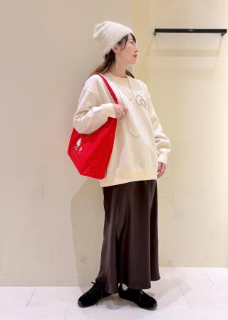 (右)上半身が華奢なウェーブが着映えするリブニット。スカラップネックはデコルテ部分を華やかに演出するので、胸上の足し算が必須なウェーブでもアクセいらずで着こなせます。体に程よくフィットしつつも、さらりとした着心地で肌離れがよいところも◎。