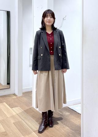 やわらかなオーガンジー素材のブルゾンは、フェミニンが得意なウェーブに、 シャープなニュアンスをプラスしてくれる注目アイテム。コンパクトなサイズ 感とボリューム袖のバランスがウェーブ向きなので、すんなり似合います。袖 をあげて、ボリュームを出すとさらに華やかな印象に。1 枚あるとコーデの幅 が広がることまちがいなし!