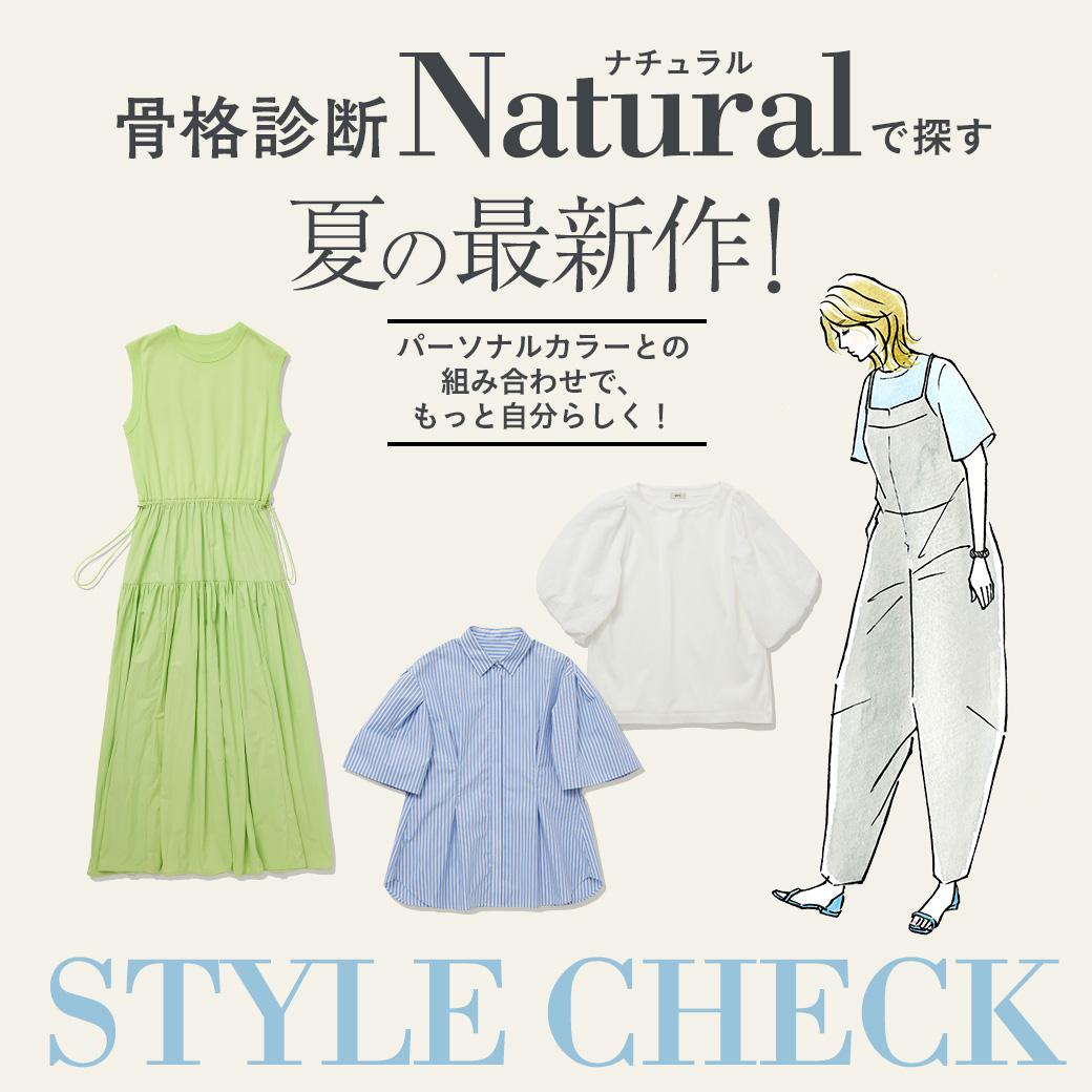 肩の力が抜けた、カジュアルでリラックス感あるアイテムが似合うナチュラルさん。心地よい肌ざわりのリネン素材や、ゆったりとしたシルエット、エッジの効いたメッシュのアイテムなど、ナチュラルさんにこそ似合うデザイン性の高いウエアで夏を楽しんで。さらに、骨格タイプ・ナチュラルに、パーソナルカラーを掛け合わせたアイテム選びもチェックしてみて!