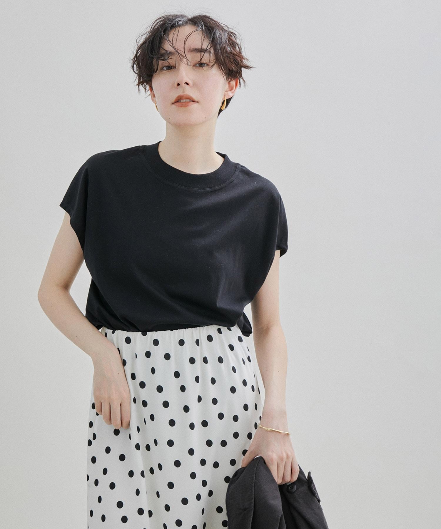 ヒップがやや隠れるような着丈や、二の腕周りも気にせず着られる絶妙な袖丈にこだわり、体型カバー効果も抜群な1枚◎
