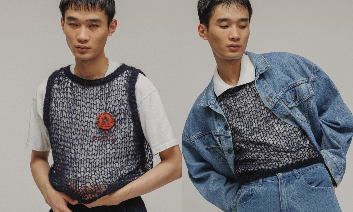 『モヘア フィッシュネット ハンドニットベスト』